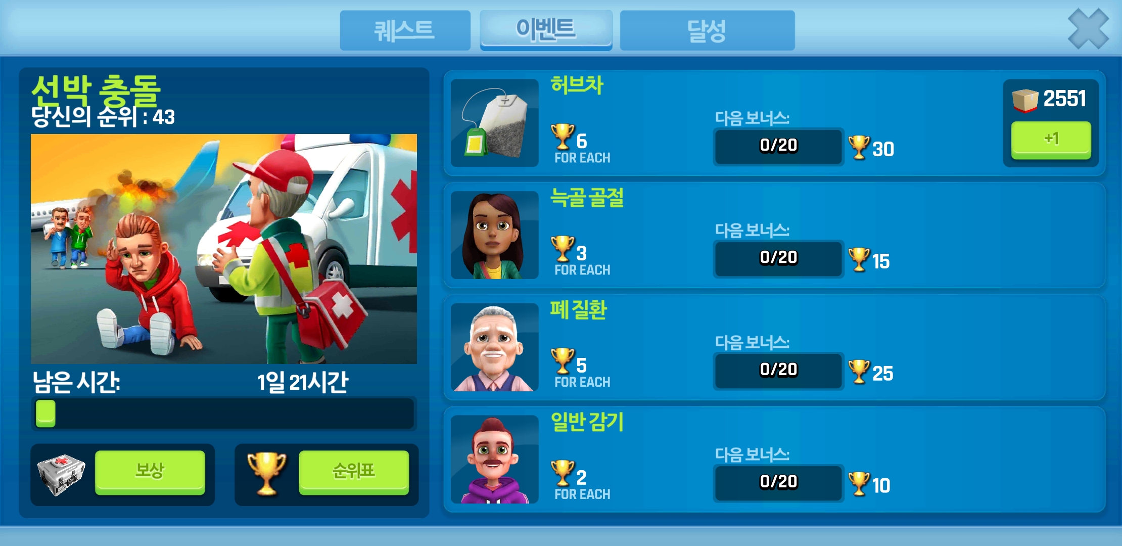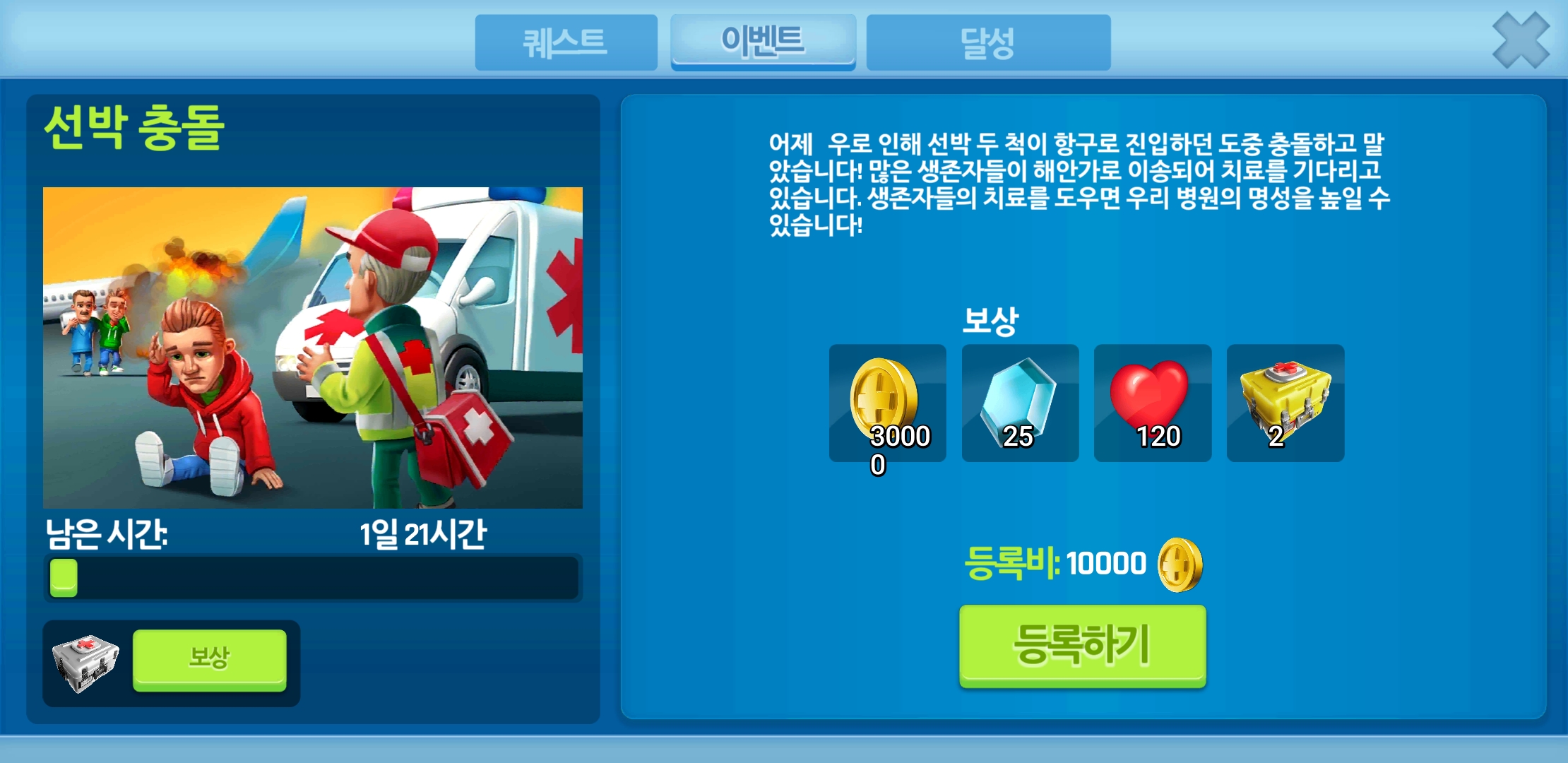 이번 Dream Hospital 이벤트는 "선박충돌" 입니다.