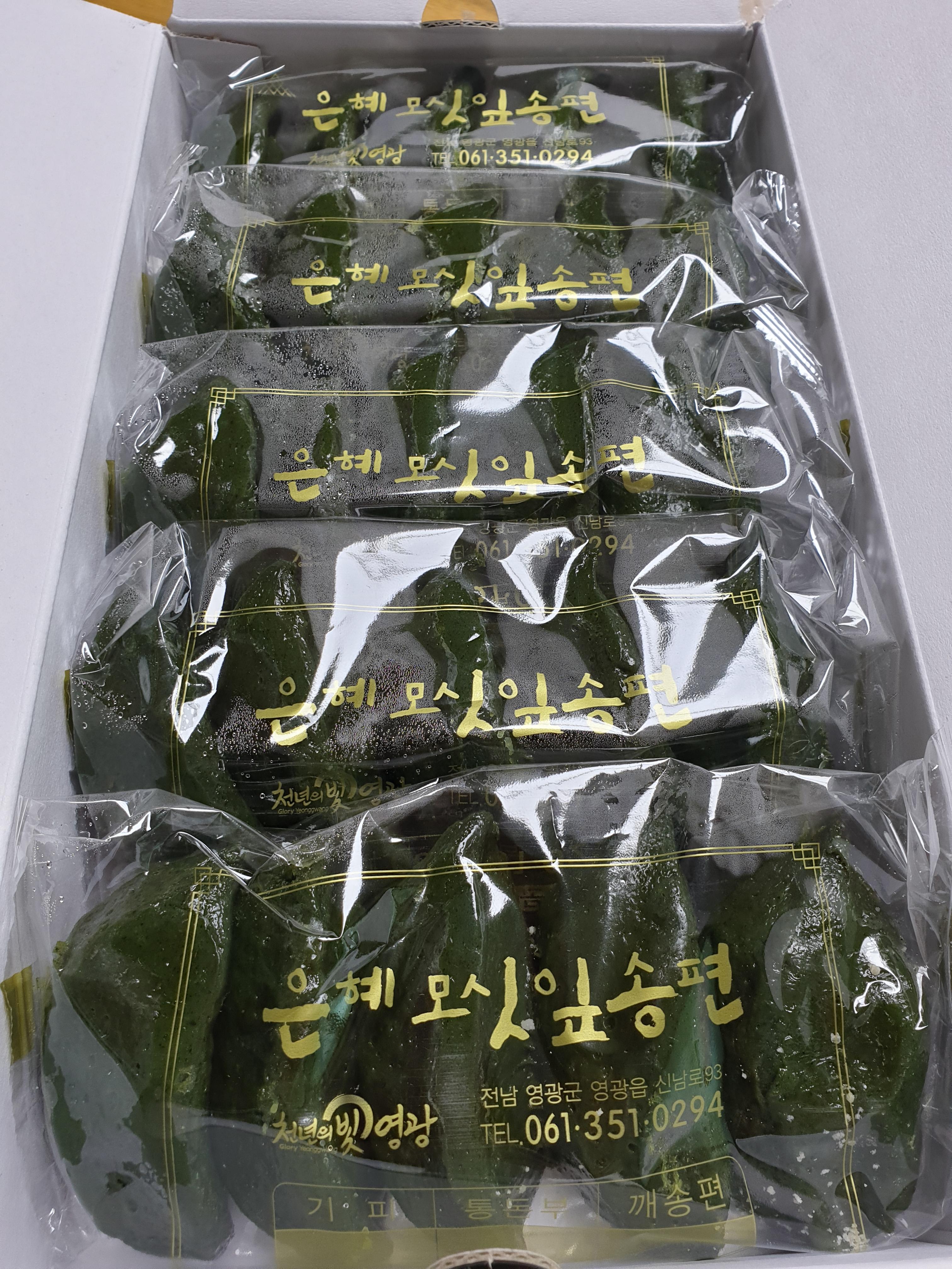 겉면에 영광 은혜 모싯잎 송편이라고 쓰여져 있더라구요. 코로나 사태로 집순이를 고집하고 있는 저에게 지인이 먹어보라고 보낸 생전 처음보는 선물 이었습니다.