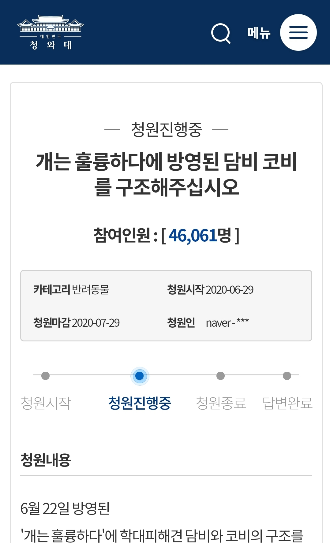 강 훈련사님의 조언대로 행동하지 않는 견주의 모습에 화가 난 시청자들은 청와대 국민청원 게시판에 이 내용을 성토하기도 했습니다.