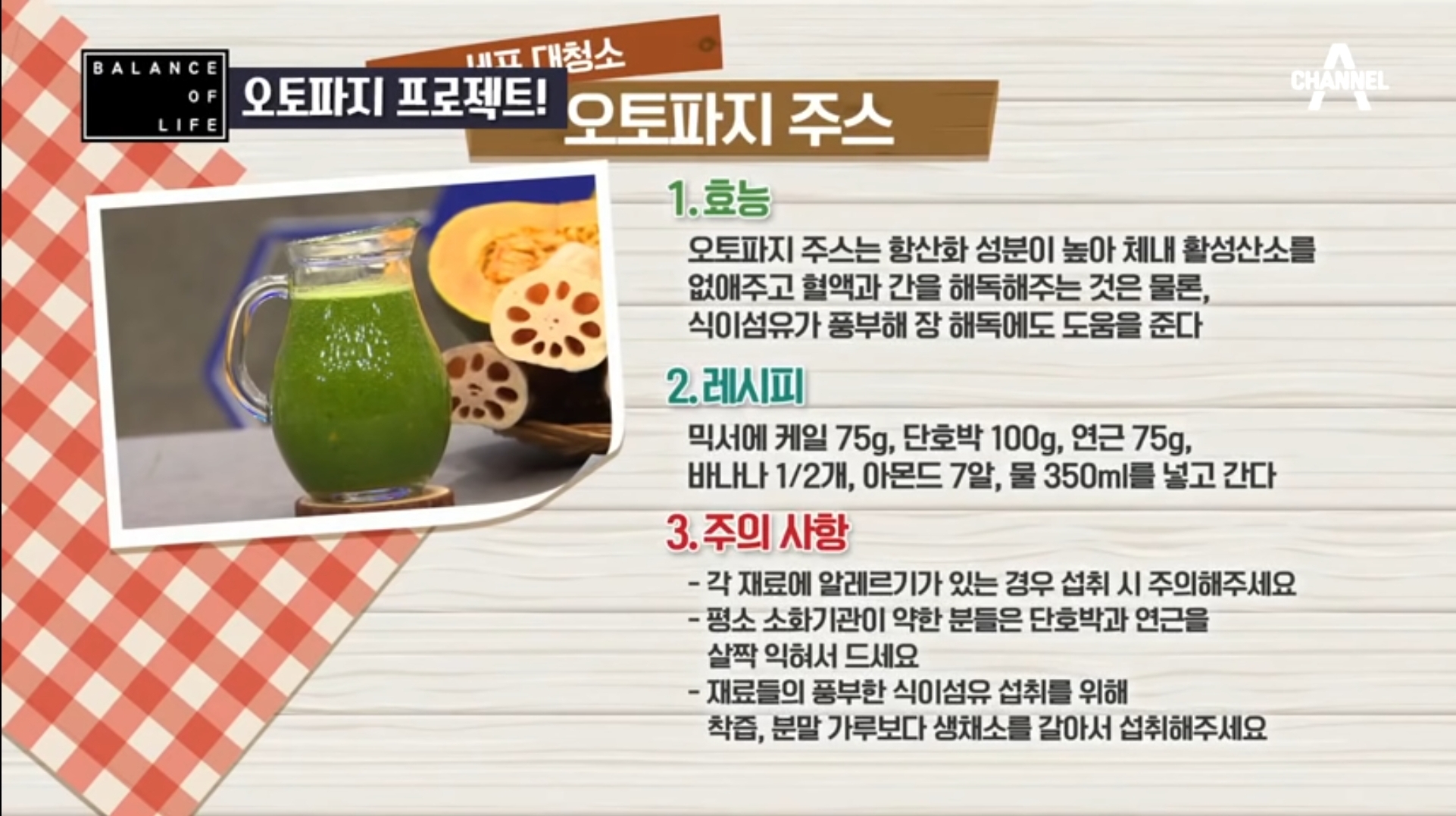 한 석달쯤 전일까요? 티비를 틀었는데 “오토파지 주스” 가 나오더라구요