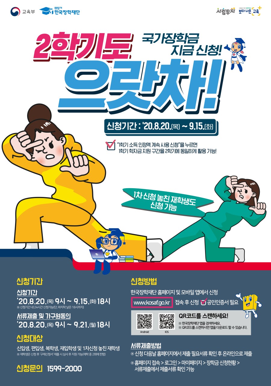 2020학년도 2학기 국가장학금, 잊지 말고 꼭 신청하세요