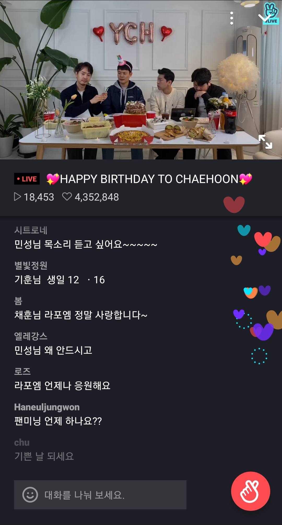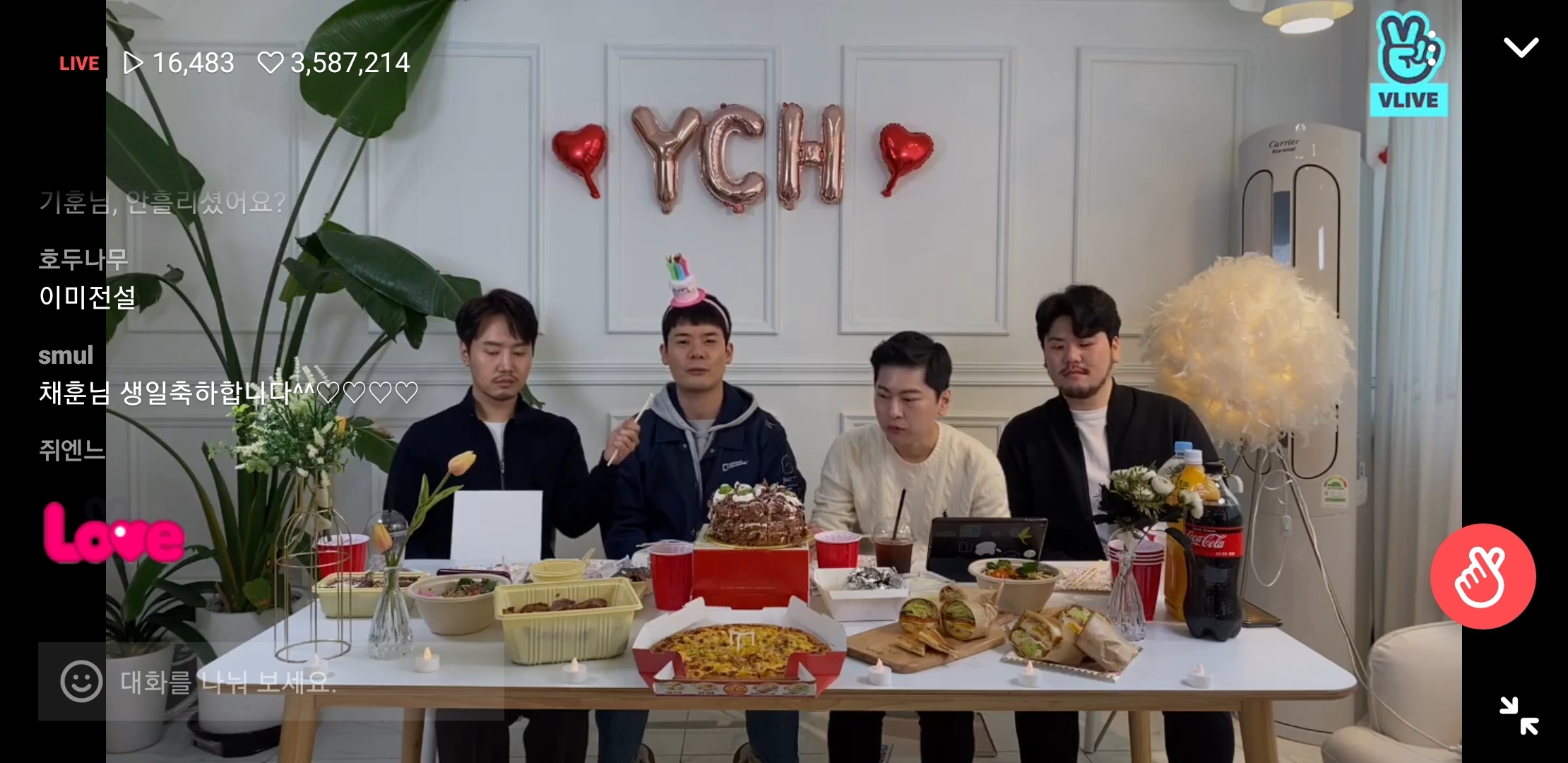 V 라이브 채훈님 생일 잔치에 초대받아 ㅋ