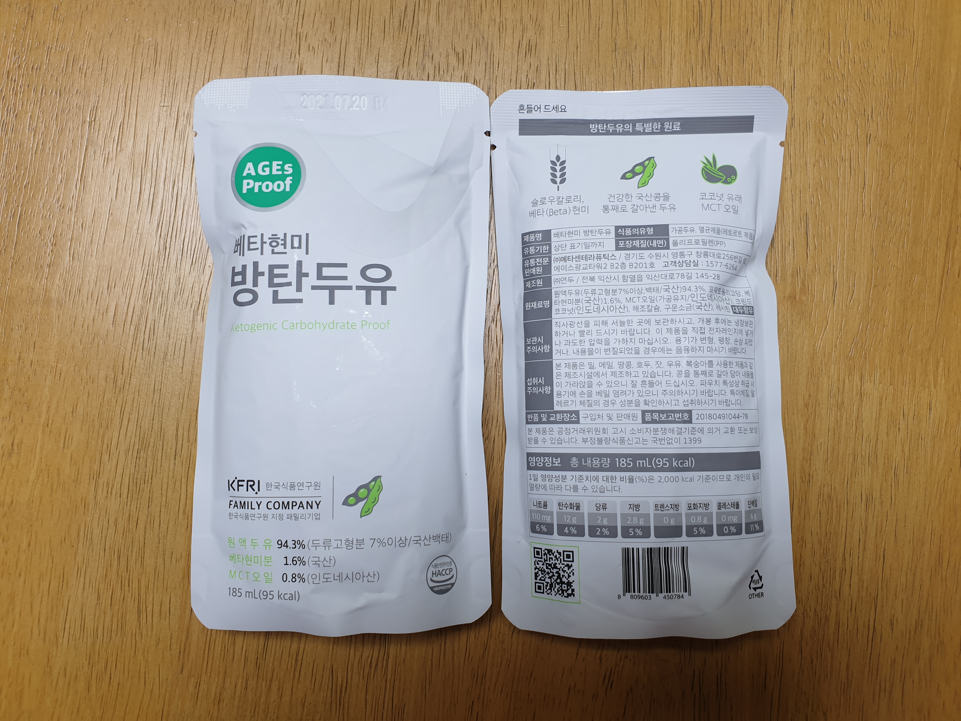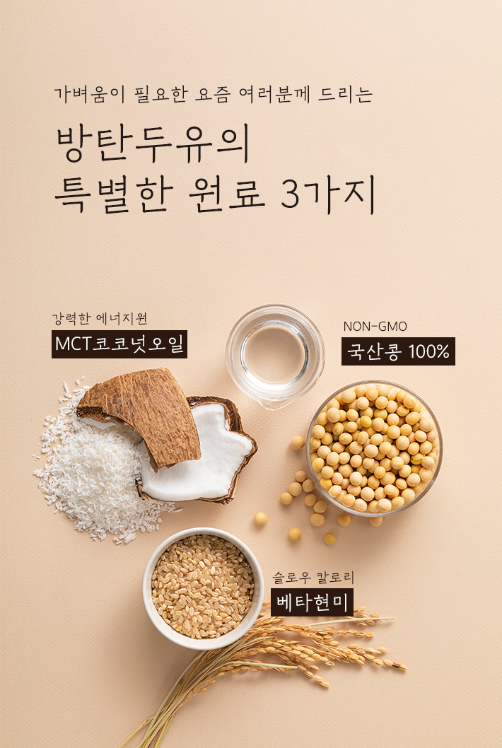 방탄두유는 국산콩과 베타현미 인도네시아산 MCT 오일이 들어있다고 하네요.