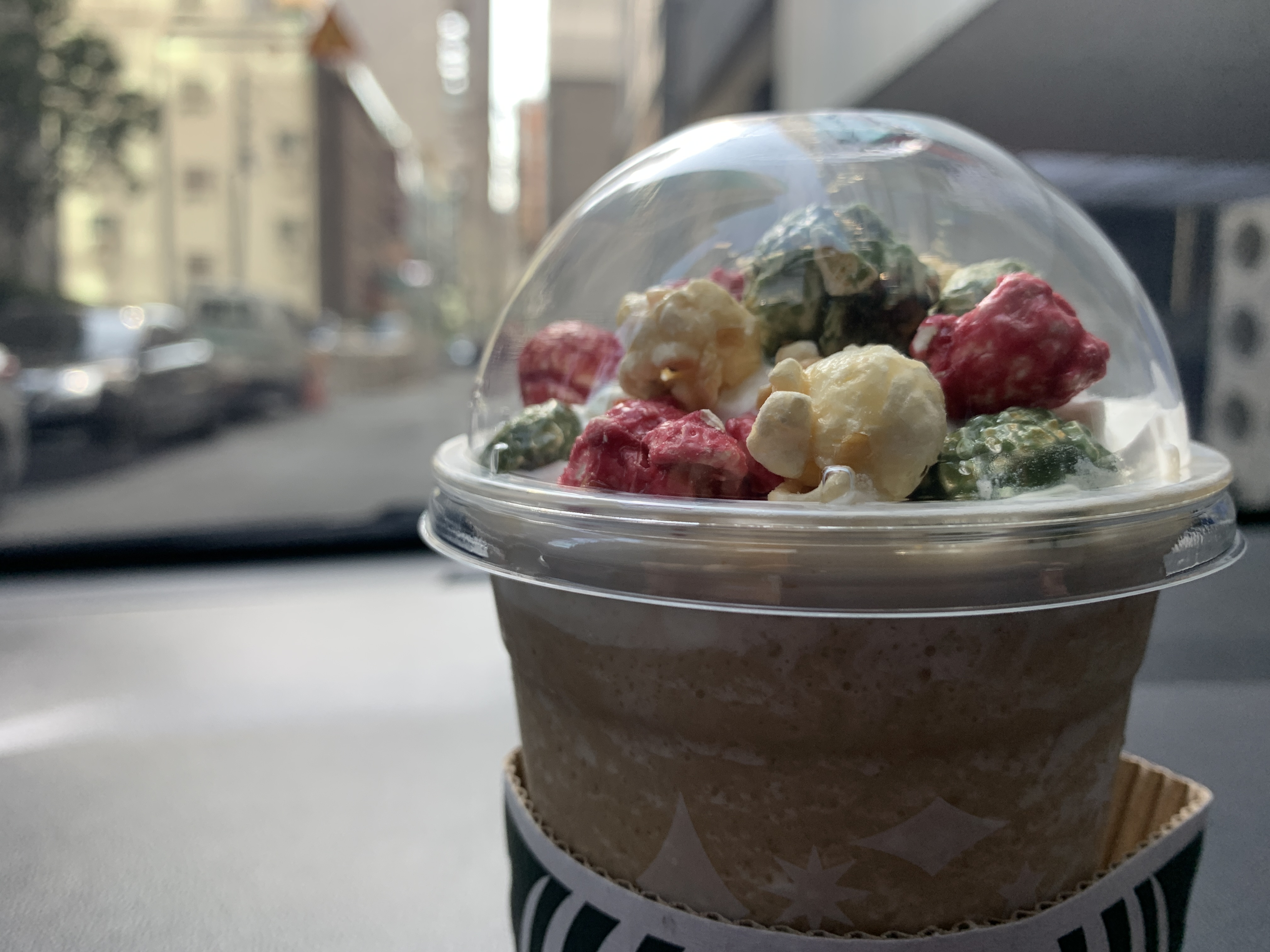 그 순간 아이스아메리카노는 이미 떠나가고 제 손에는 토피넛 팝콘 트리 프라푸치노가 들려있네요 ㅎㅎ