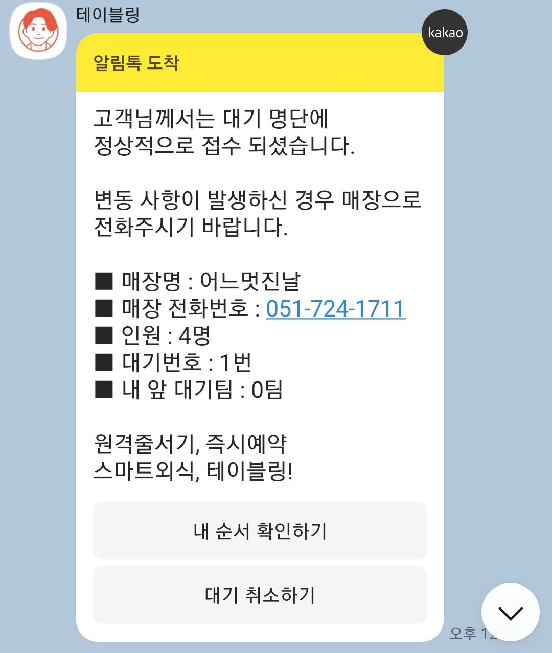 자리가 셋팅되기 전에 먼저 문앞에 있는 테이브링을 통해서 대기명단에 접수를 합니다.