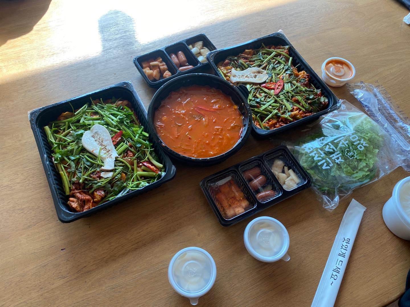"미나리 제육관도시락- 4인 제육김치찌개 세트 도시락" (내돈내산)