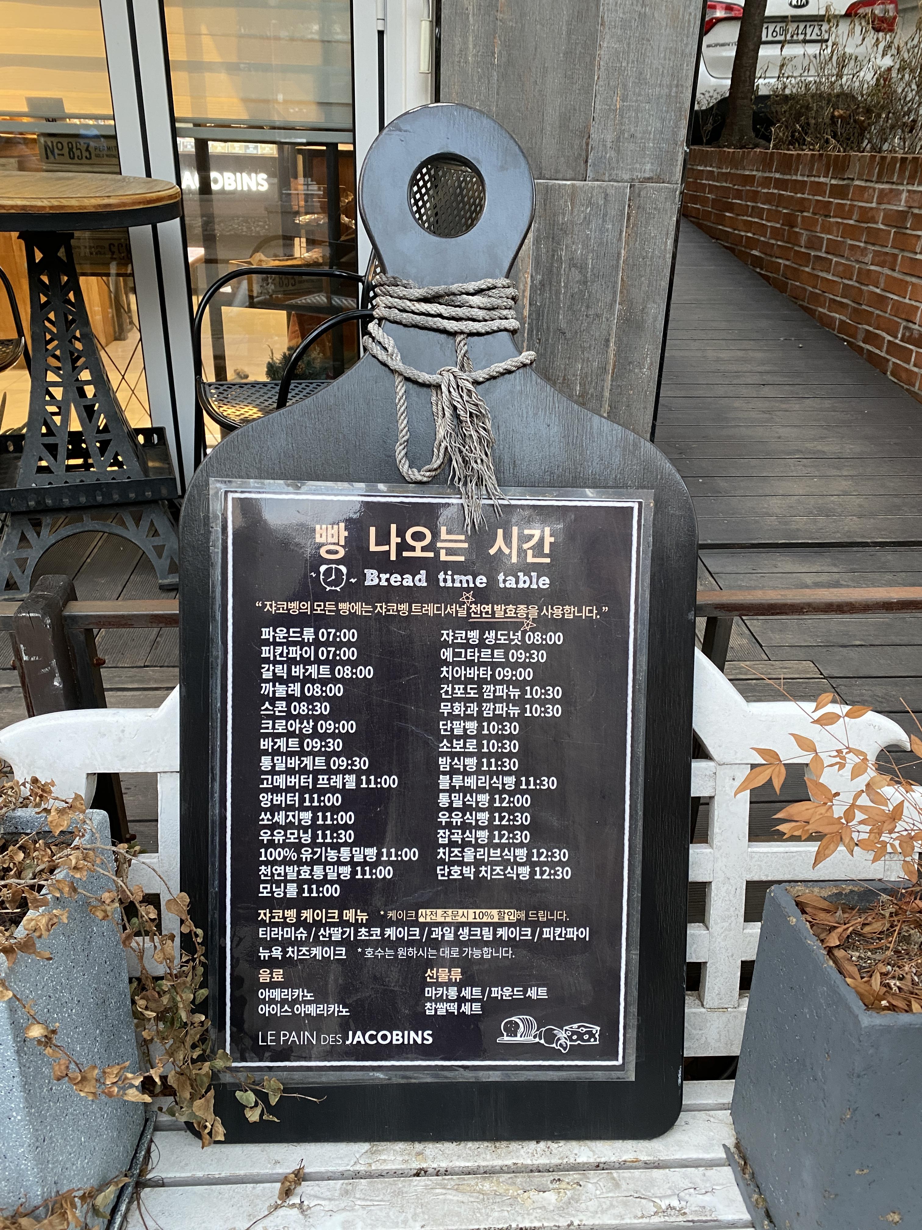 빵집 앞에는 친절하게 빵이 언제 나오는지도 안내되어 있었습니다.