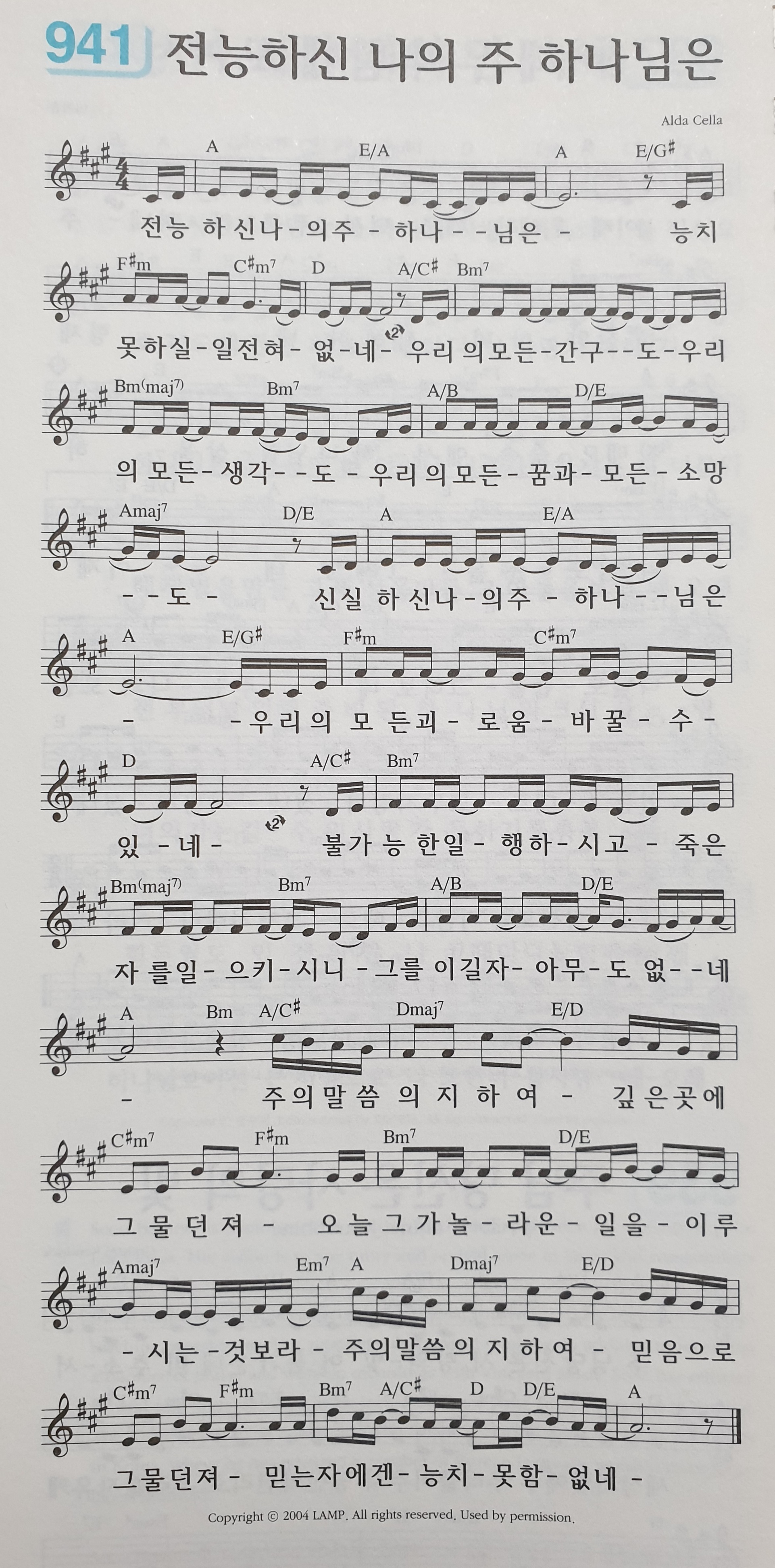 전능하신 나의 주 하나님은 능치못하실 일이 없는 분이십니다.