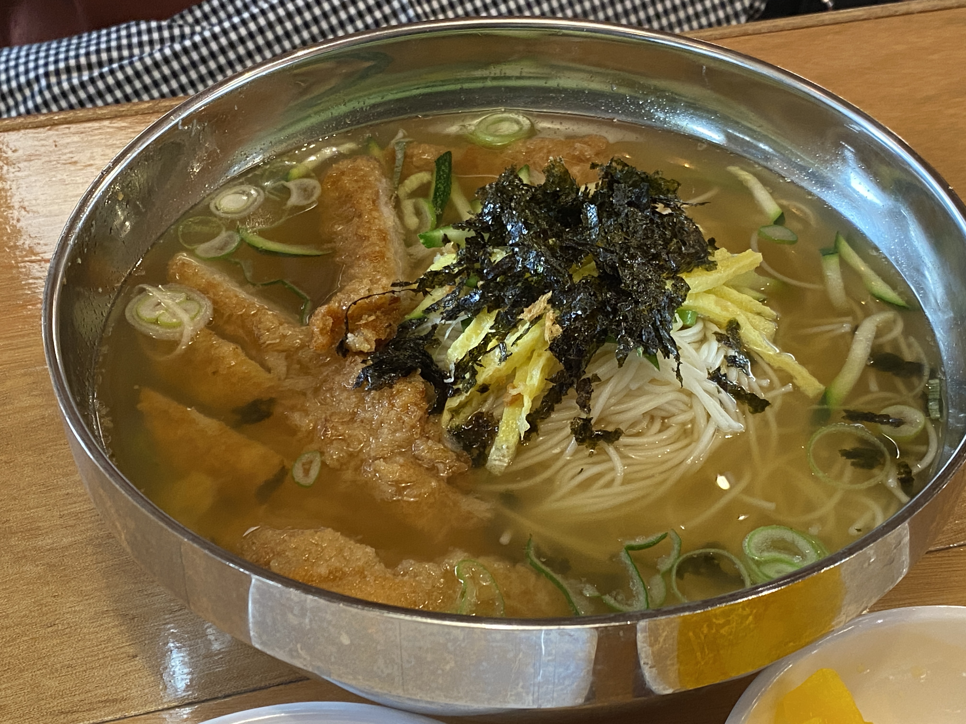 돈까스 잔치국수: 9500원. 기대했던 메뉴인데... 흠... 좀 아쉽습니다. 특히 국물이 너무 짭니다. 대표 메뉴이지만 좀 아쉬운... 참고고 사진은 곱배기입니다. 성인 남성은 반드시 곱배기 추천합니다.