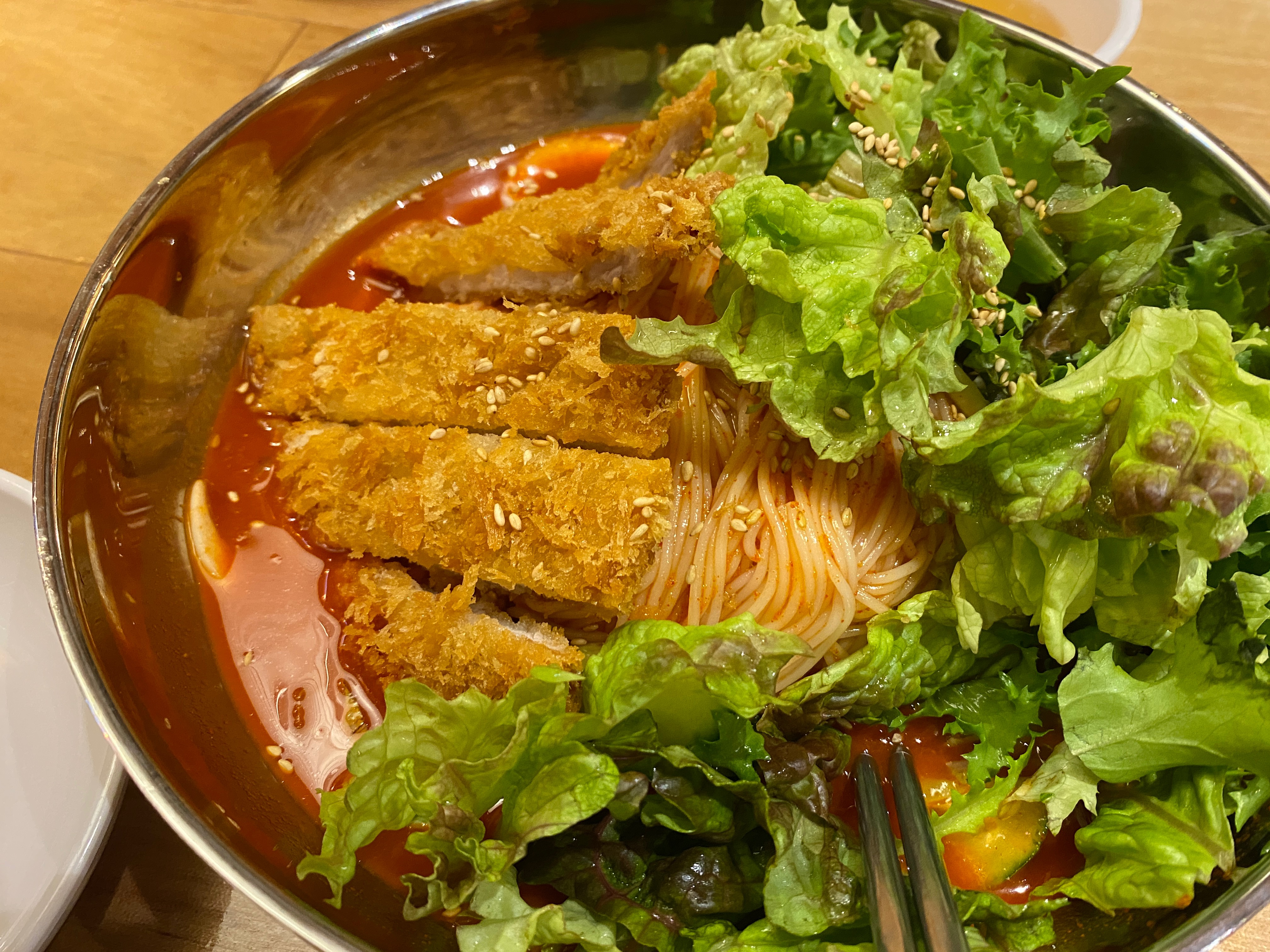 돈까스 비빔국수: 맛있습니다. 매콤하고 돈까스와 조합이 딱 좋습니다.