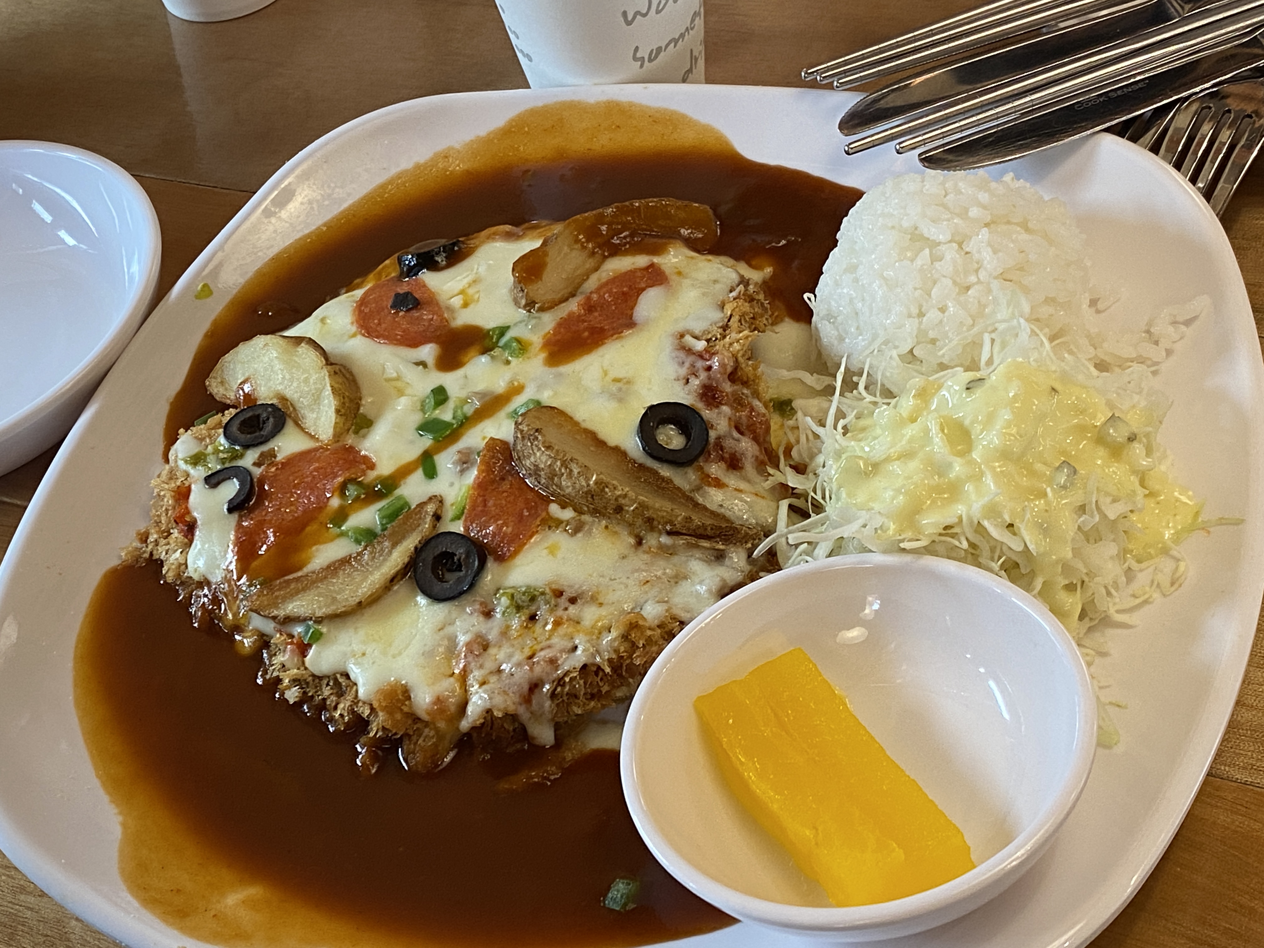 피자돈까스(12,000): 가격은 조금 사악한 면이 있지만... 맛있습니다. 치즈도 적당하고 풍미가 좋습니다. 제법 피자맛도 나고 좋습니다. 약간 가격대가 있지만... 추천합니다.