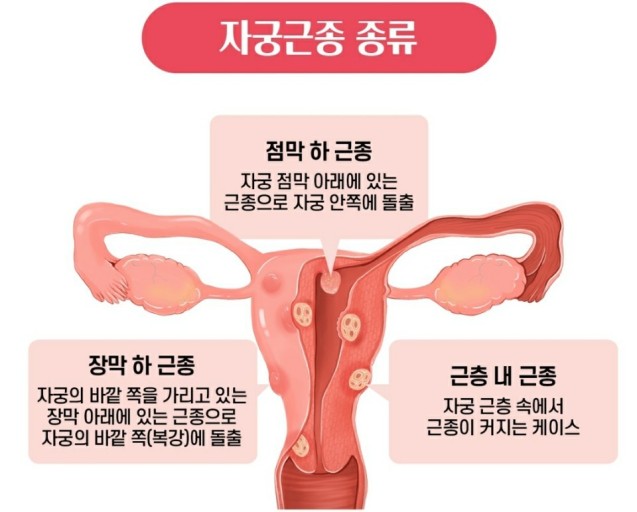 여성의 자궁은 점막, 근육, 장막으로 구성되어 있으며, 자궁근종의 종류는 발생 층에 따라 달라지게 된다.