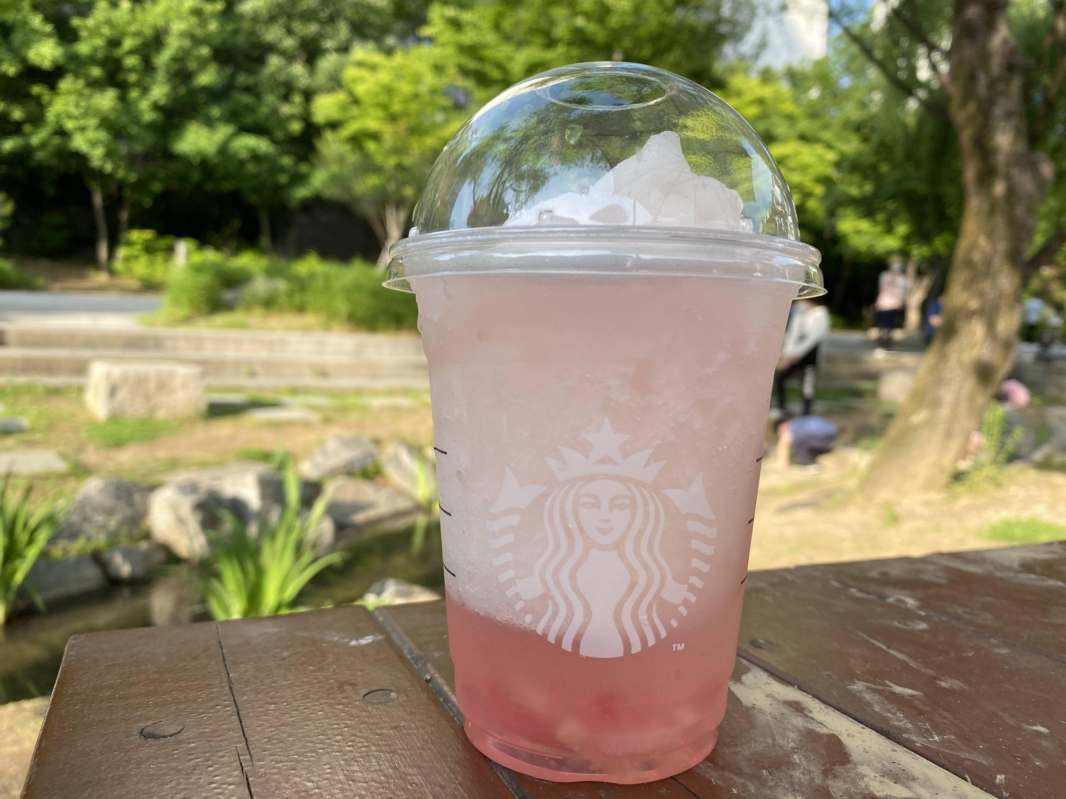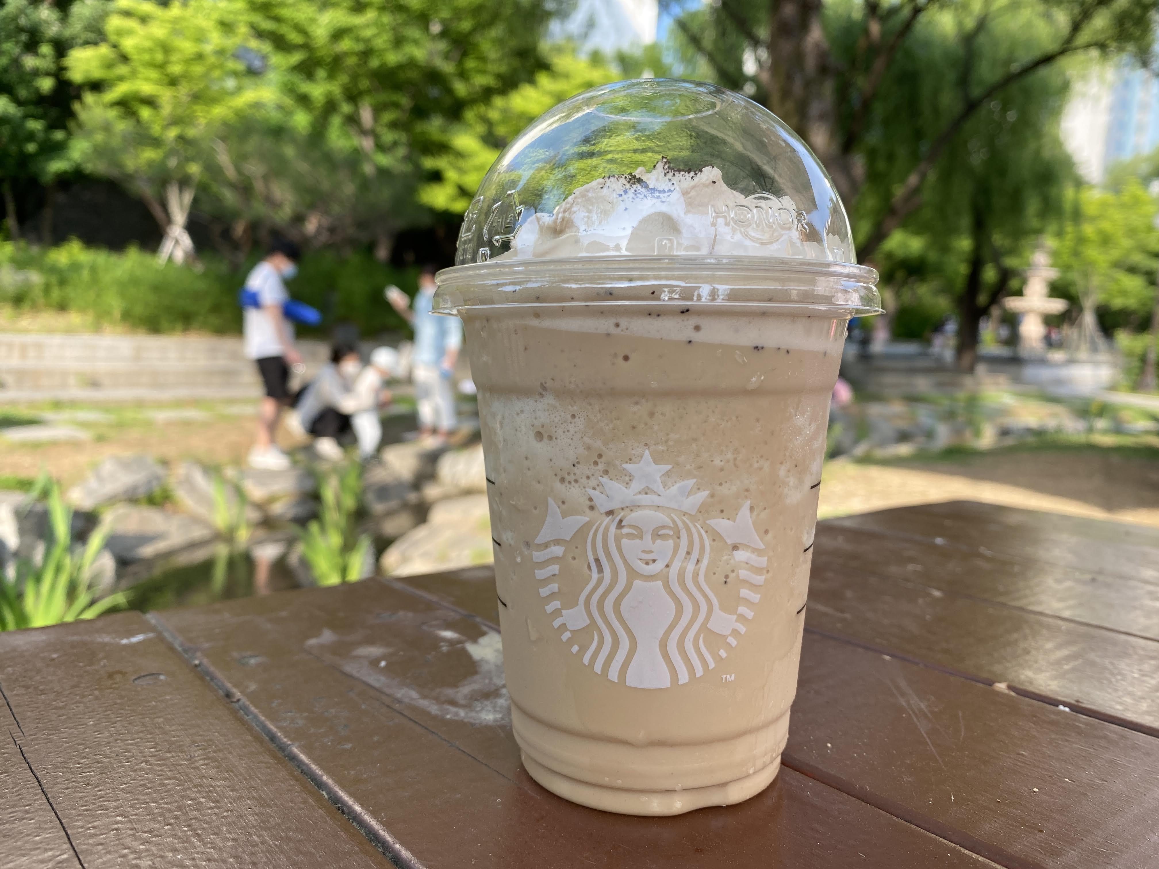 스타벅스 음료 한잔씩 사들고 공원을 걸었다