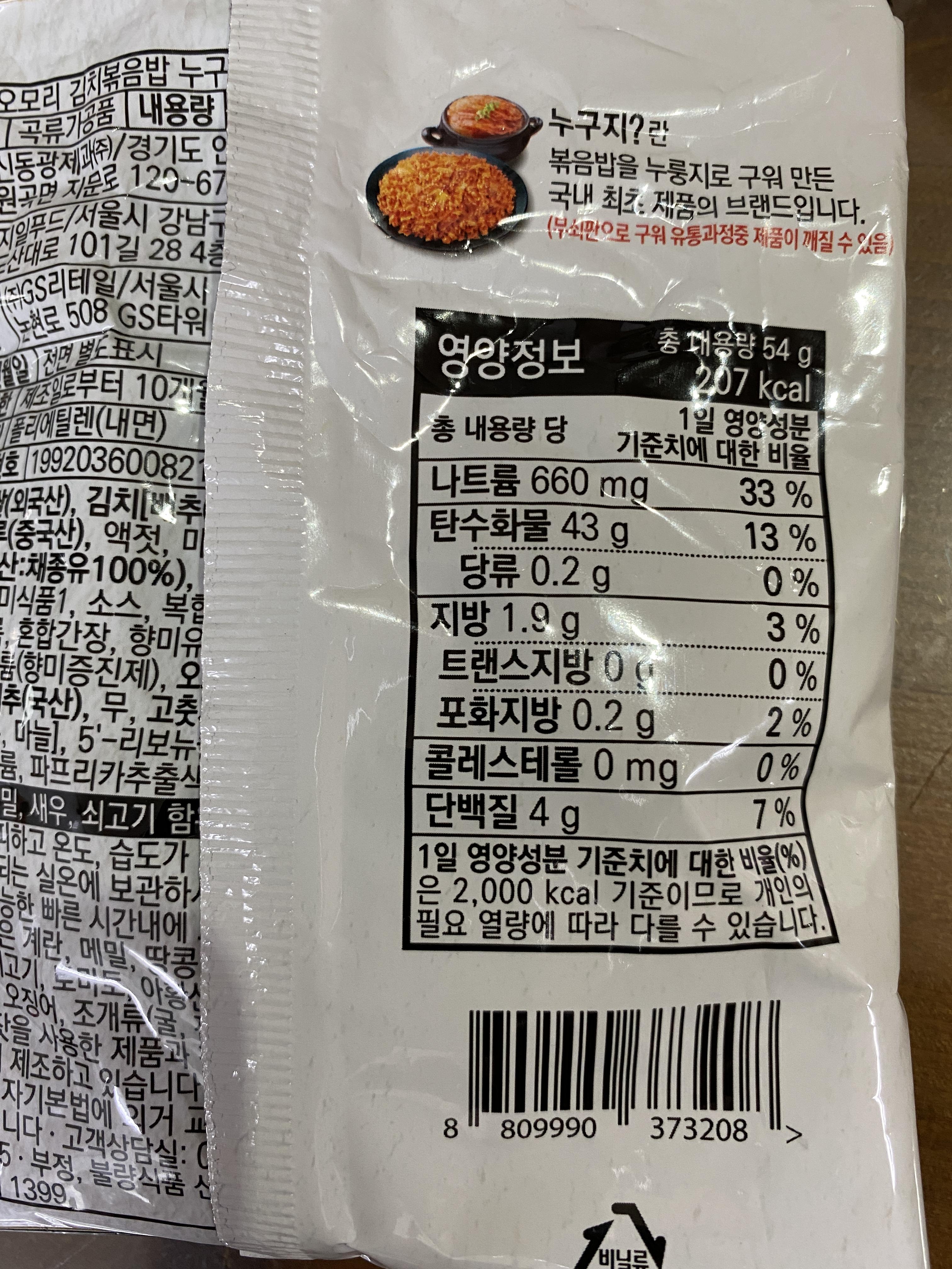 총 54g인데... 207kcal이니.. 칼로리가 낮지는 않네요. 아무래도 탄수화물이라 어쩔 수 없는 것 같긴 해요. 54g이면 한번 털어먹으면 금방 끝나는 양이기도 합니다.