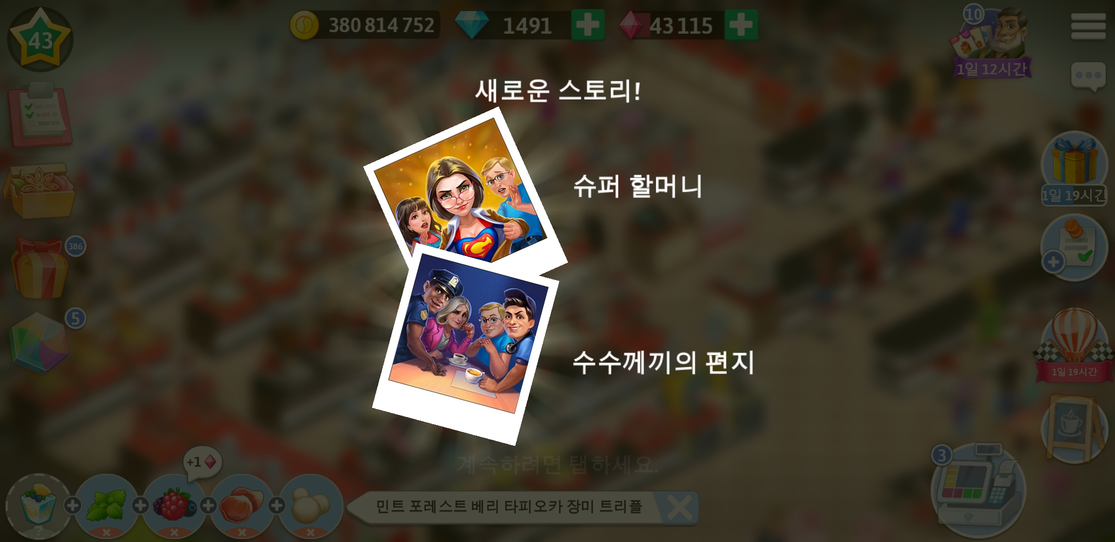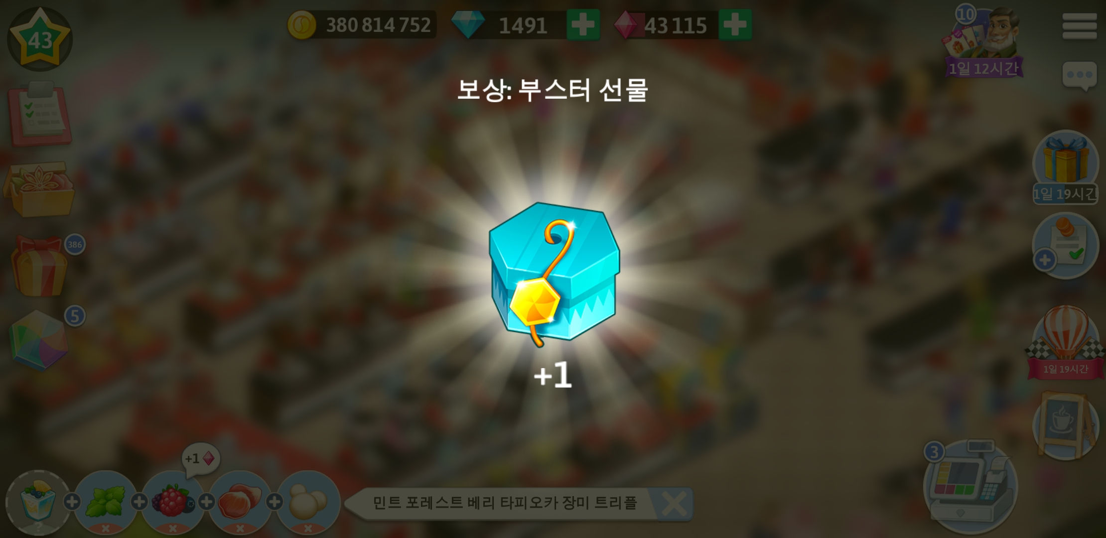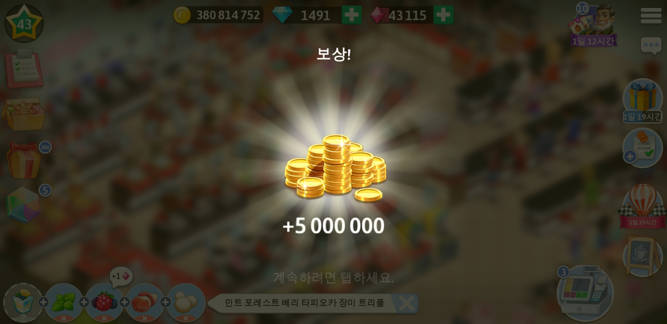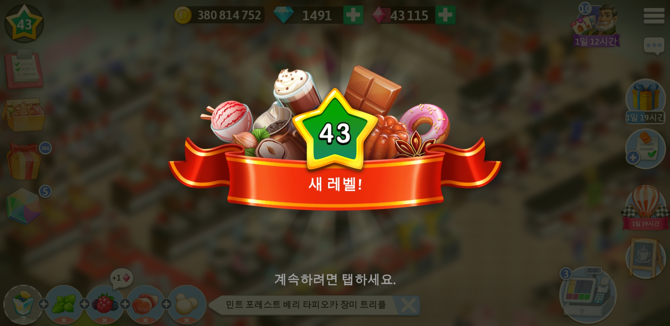 드디어 마이카페 43레벨이 되었습니다.