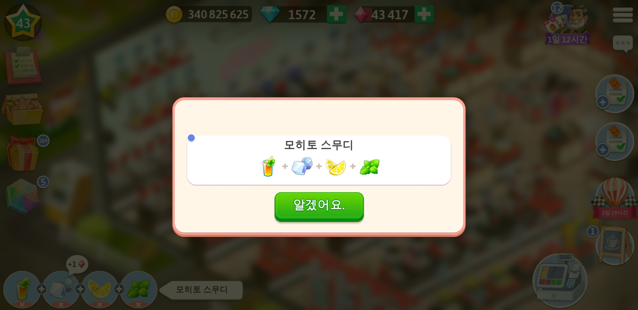 마이카페 43레벨 레시피