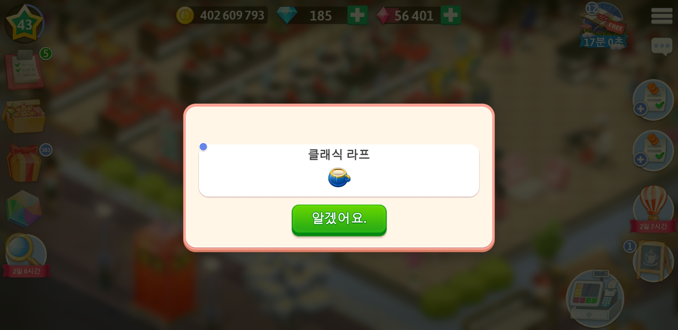 | 마이카페 42 레벨 레시피 - 트리플 진열장 (0) | 2021.09.05 |