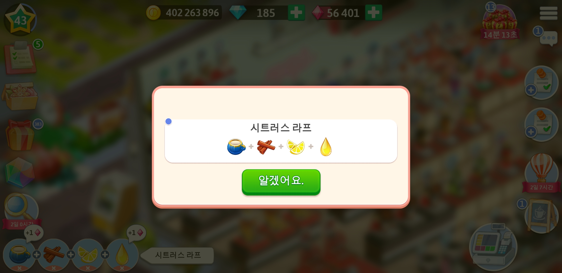 | 마이카페 45레벨 치커리 커피 레시피 (0) | 2022.01.01 |