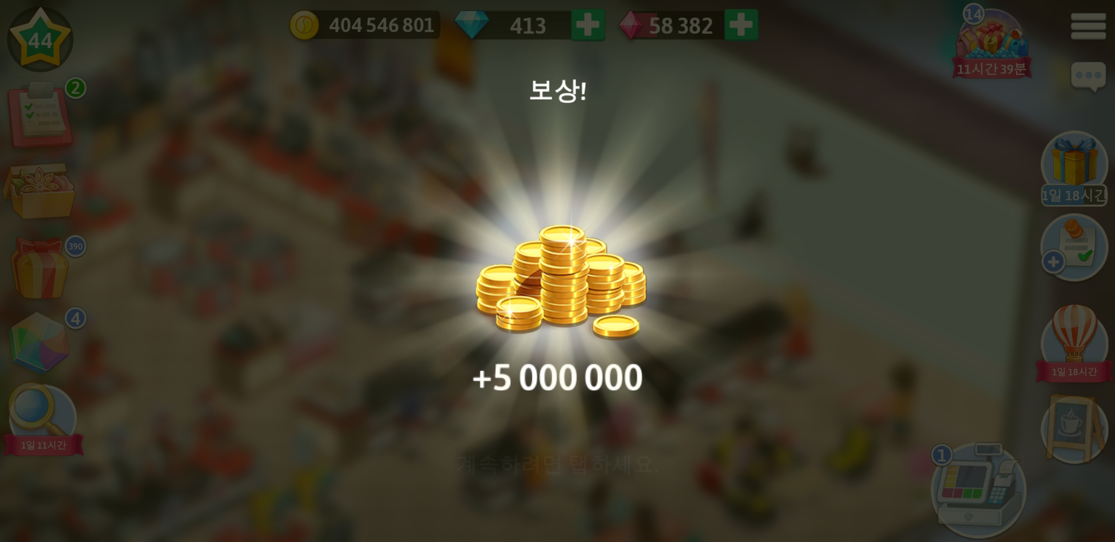 레벨이 달라졌으니 선물도 주고 돈도 줍니다 ㅎㅎ