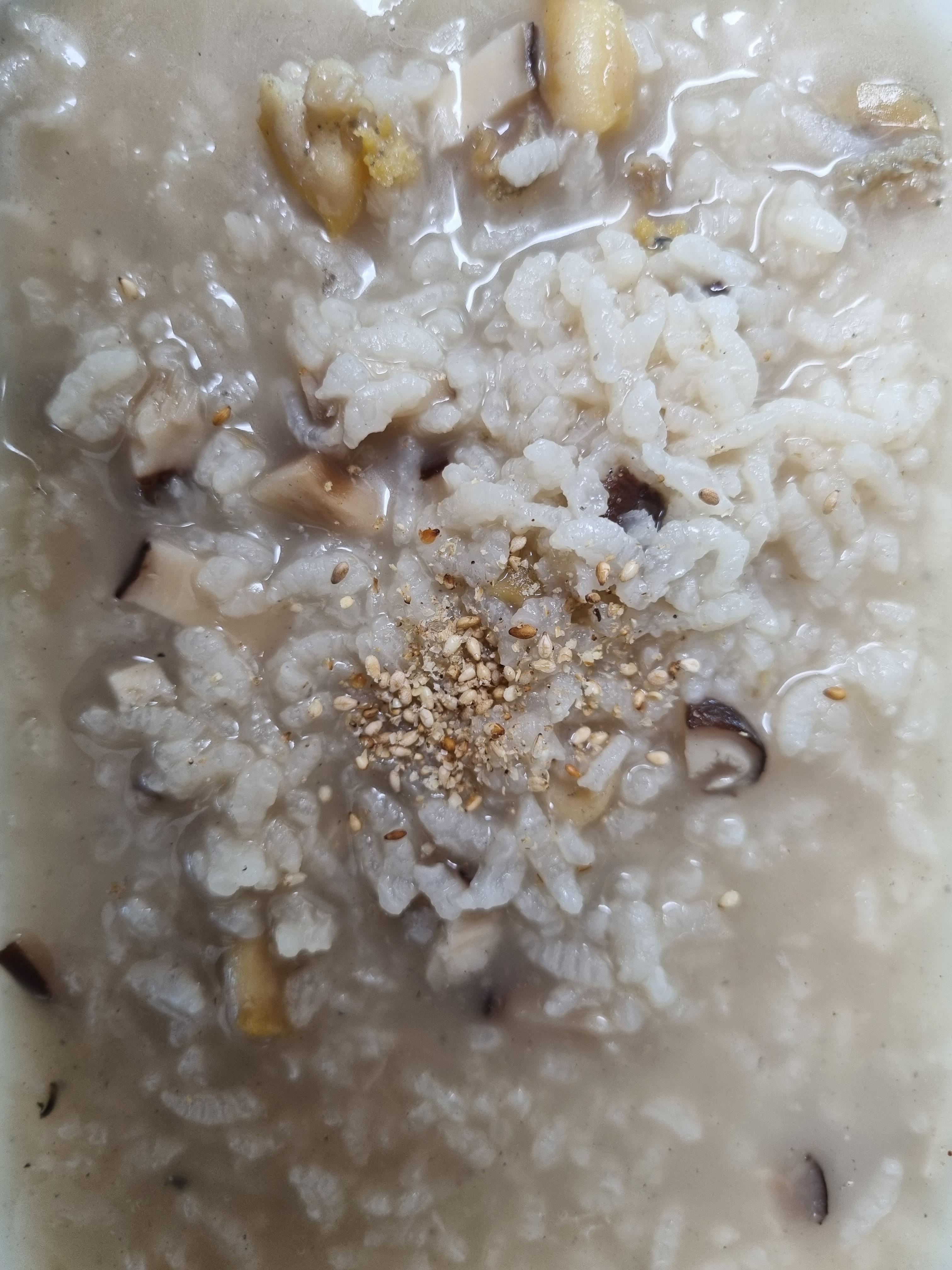 5. 채수를 조금씩 넣어 주면서 바닥에 눌지 않도록 한번씪 휘휘 져어주고 쌀이 퍼질때까지 기다렸다가 간을 해주면 죽이 완성이다.