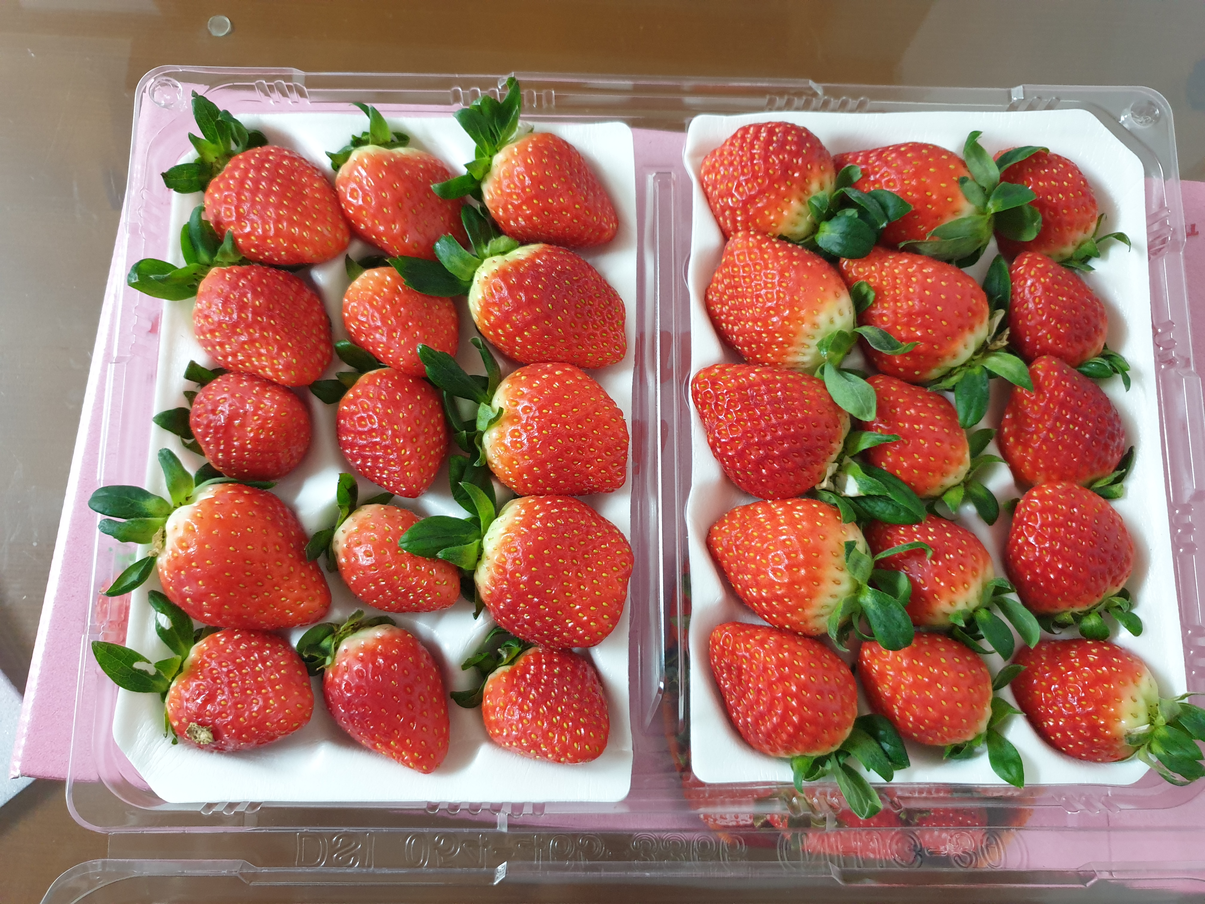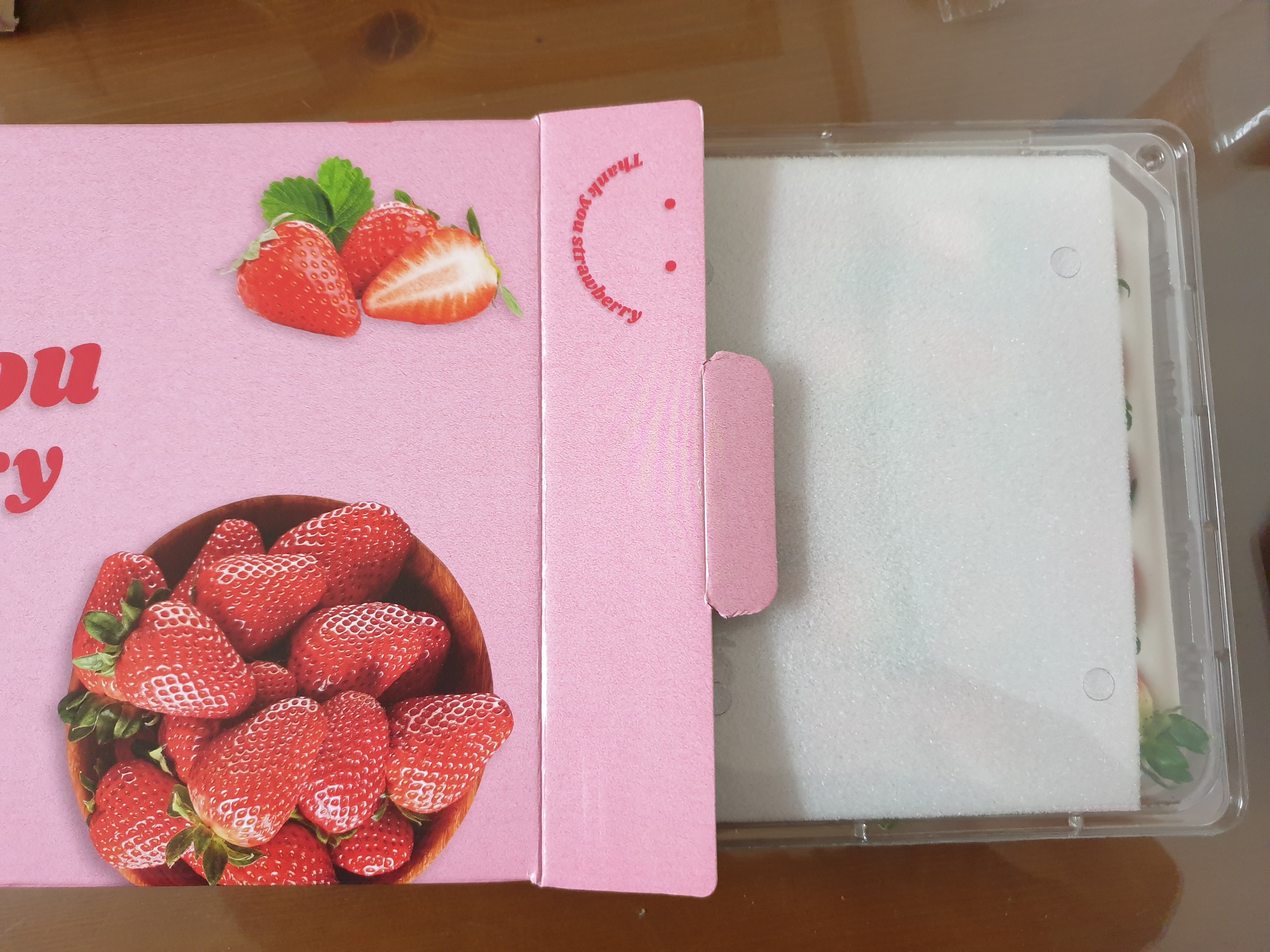 포장도 안전하게 부드러운 스티로폴같은 재질의 상지위에 딸기가 살포시 앉아있고 그위를 스폰지 같은 친구가 덮고 있어서 수분이 날라가지도 않았다.