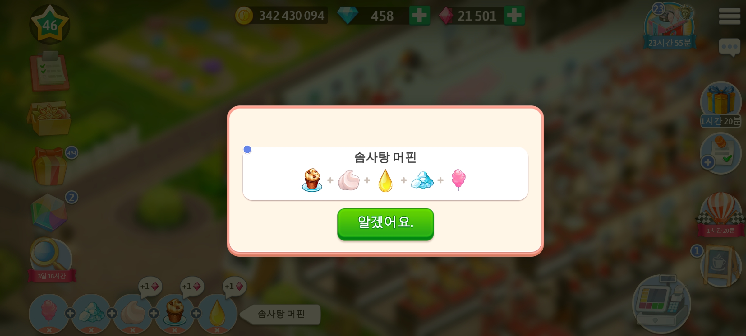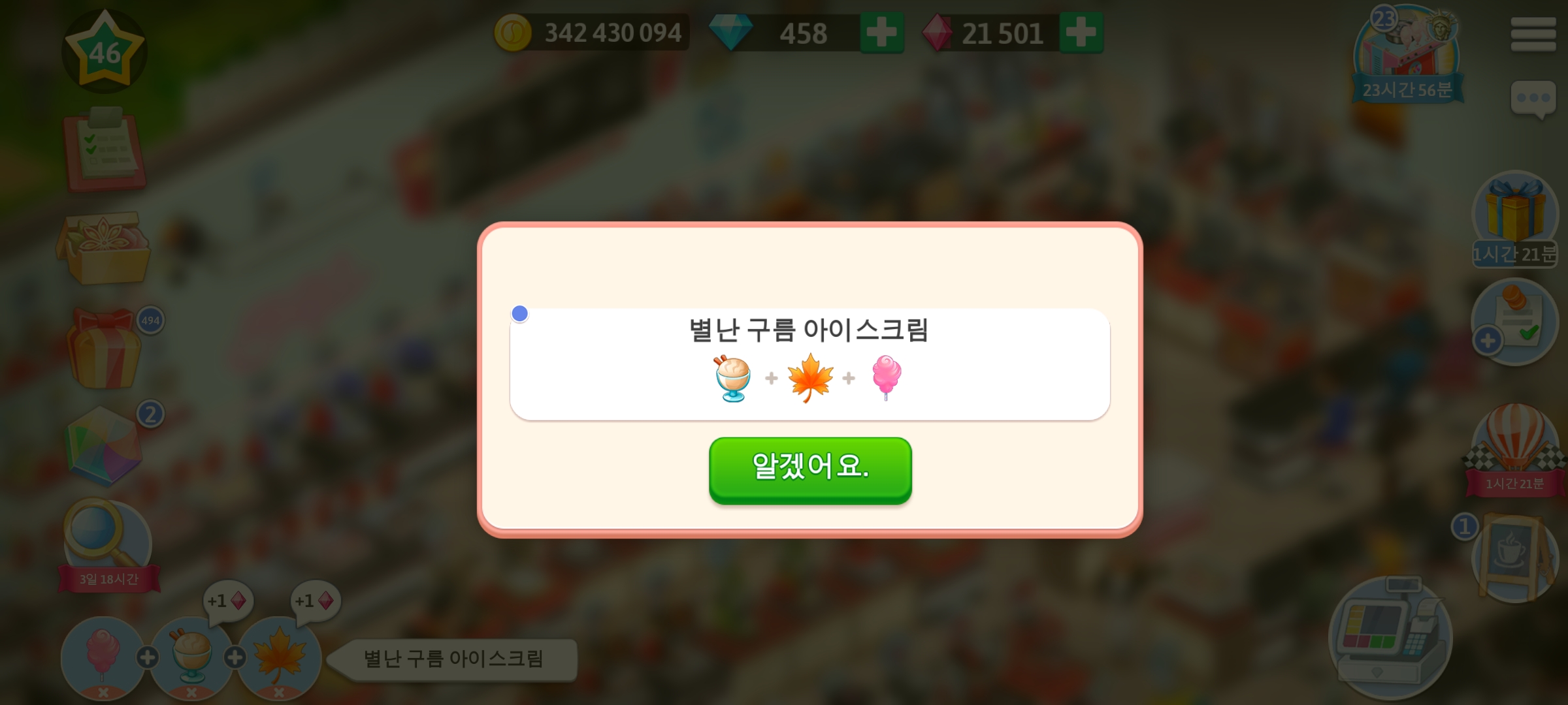 마이카페 46 레벨 솜사탕 기계 레시피