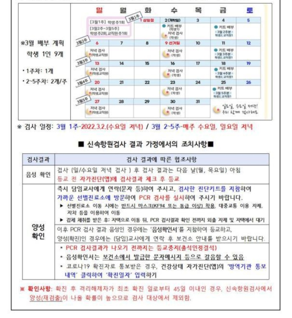일요일같은 경우는 오후 9시 까지 검사 결과를 담임선생님께 통보 해야 월요일 학교에 무사히 갈수 있다는데....