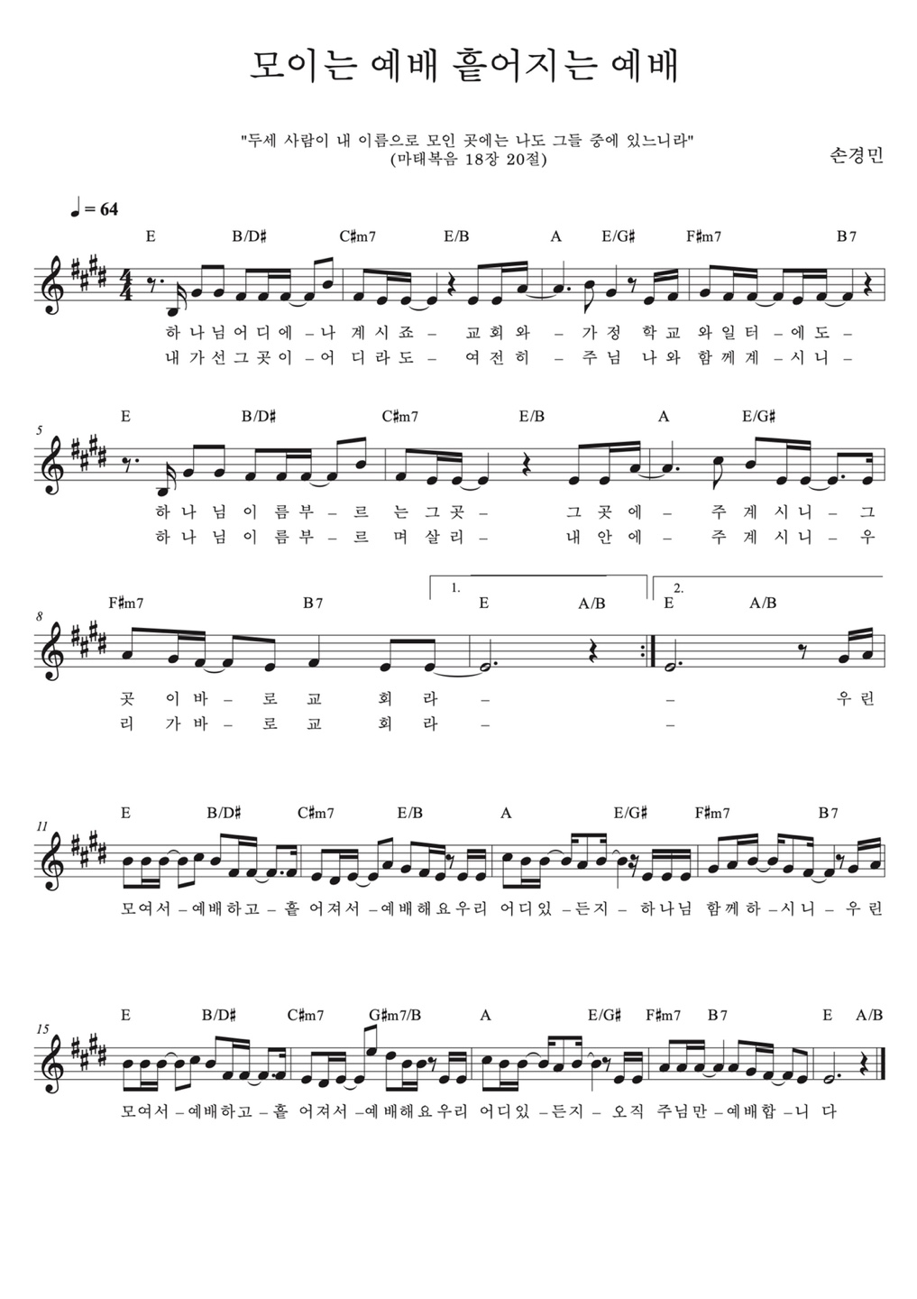 우린 모여서 예배하고 흩어져서 예배해요