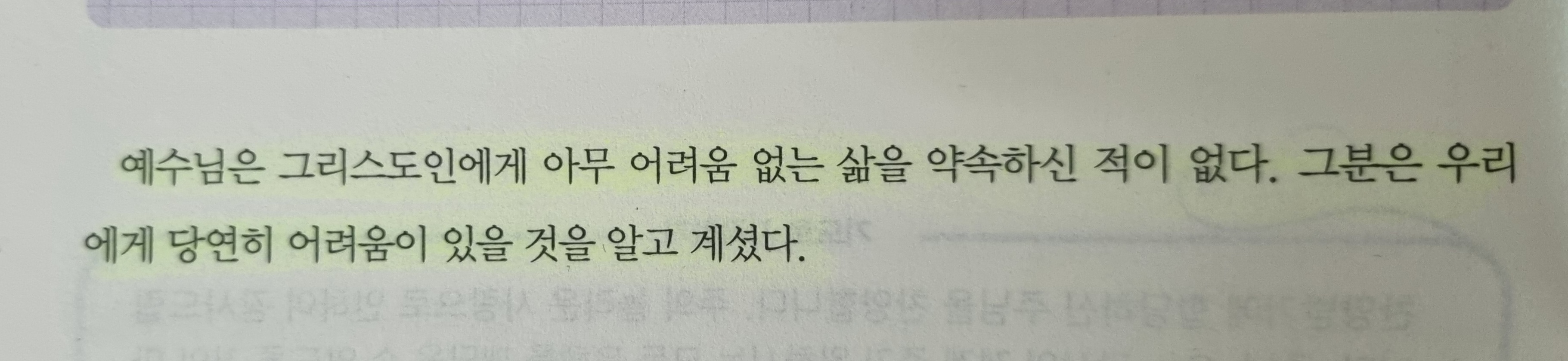 예수님은 그리스도인에게 아무 어려움 없는 삶을 약속하신 적이 없다. 그러나 우리는 예쉳으면 어려움이 없기를 평안하기를 바란다.