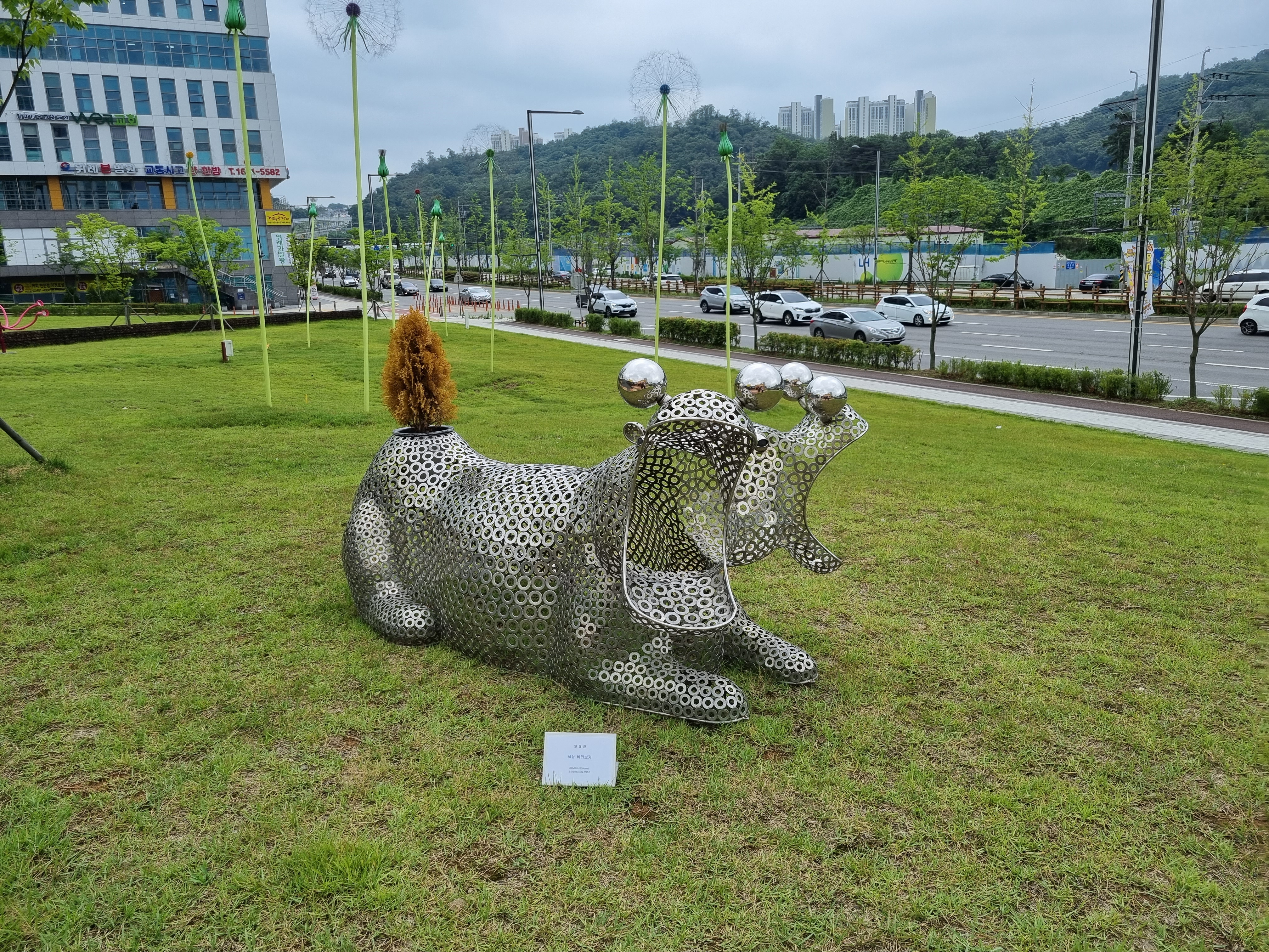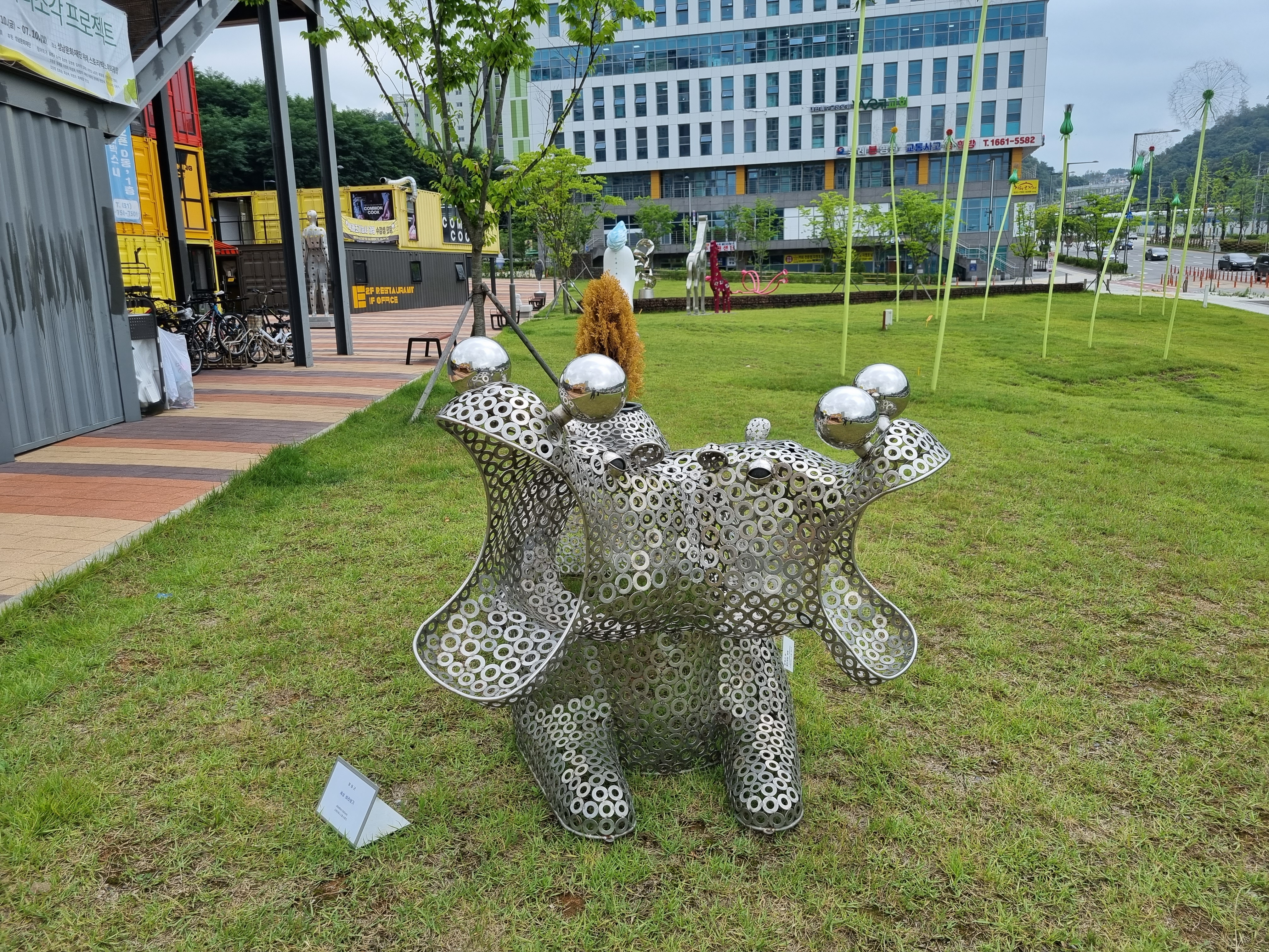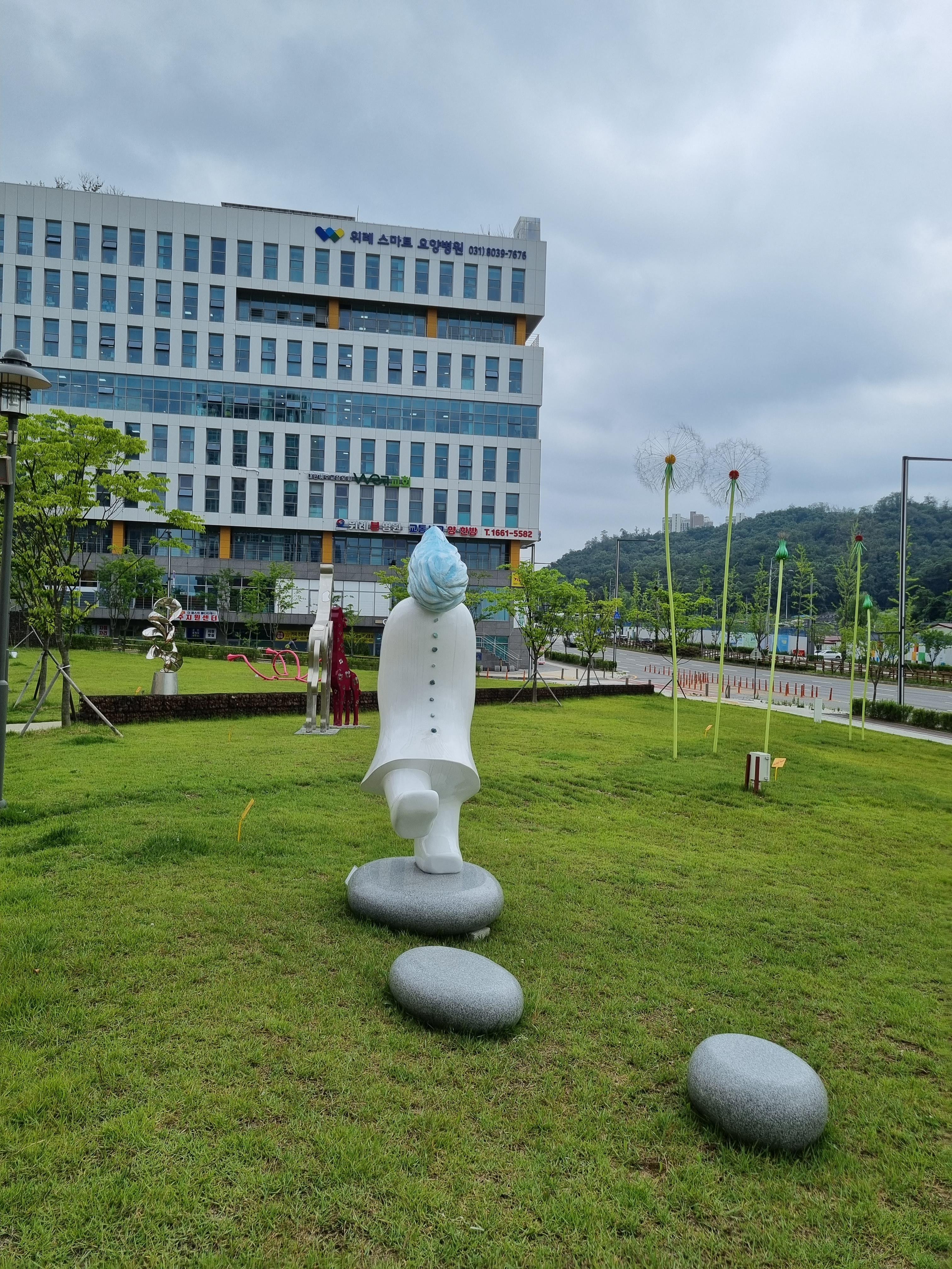 위례 스토리박스 앞 공원에 조각품들이 전시되어 있었다.