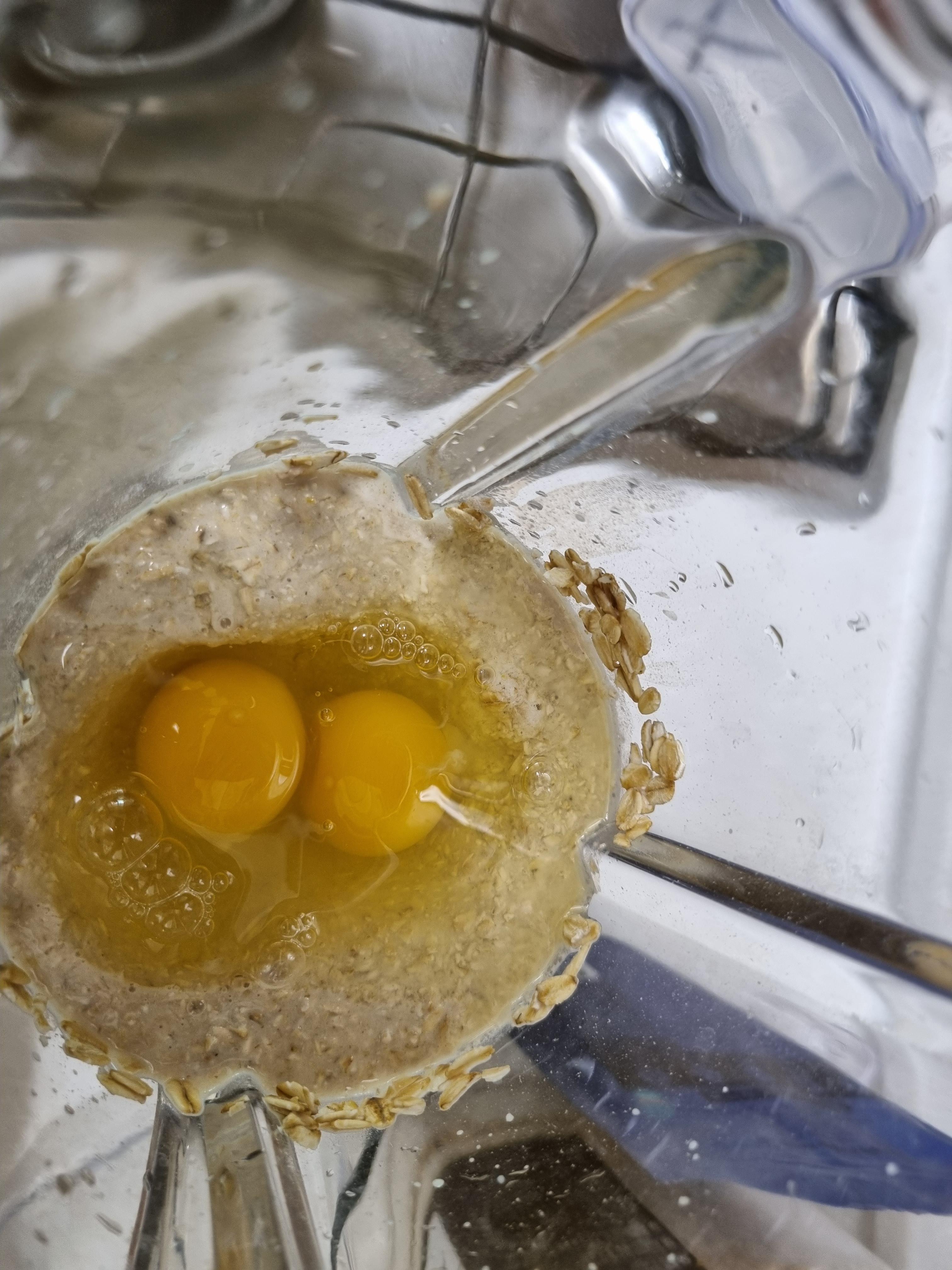 여기에 베이킹 파우더, 소금, 스테비아, 우유, 달걀 바닐라익스트랙 까지 넣고 갈아준다.