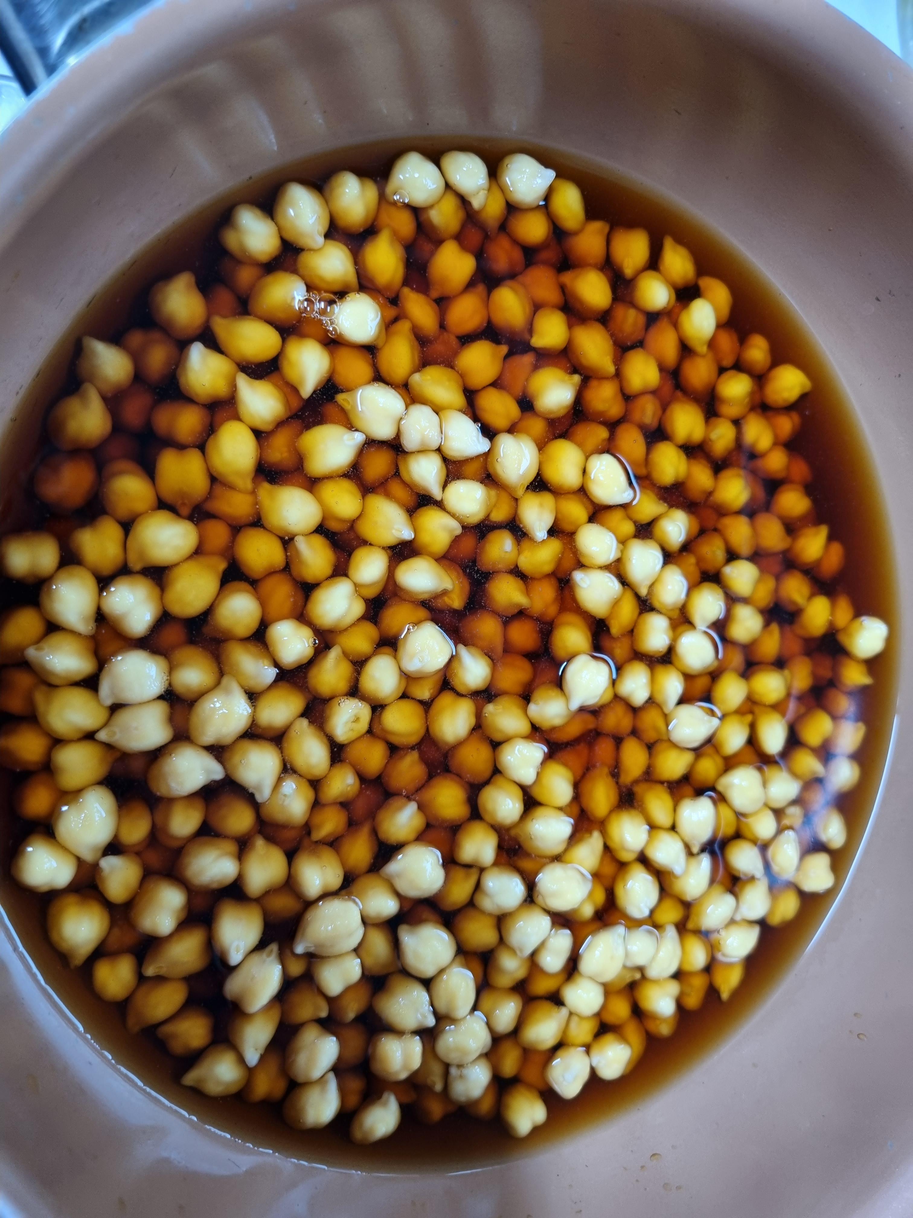 어쩔수 없이 물에 불렸는데 8시간 후에 병아리콩을 보니...