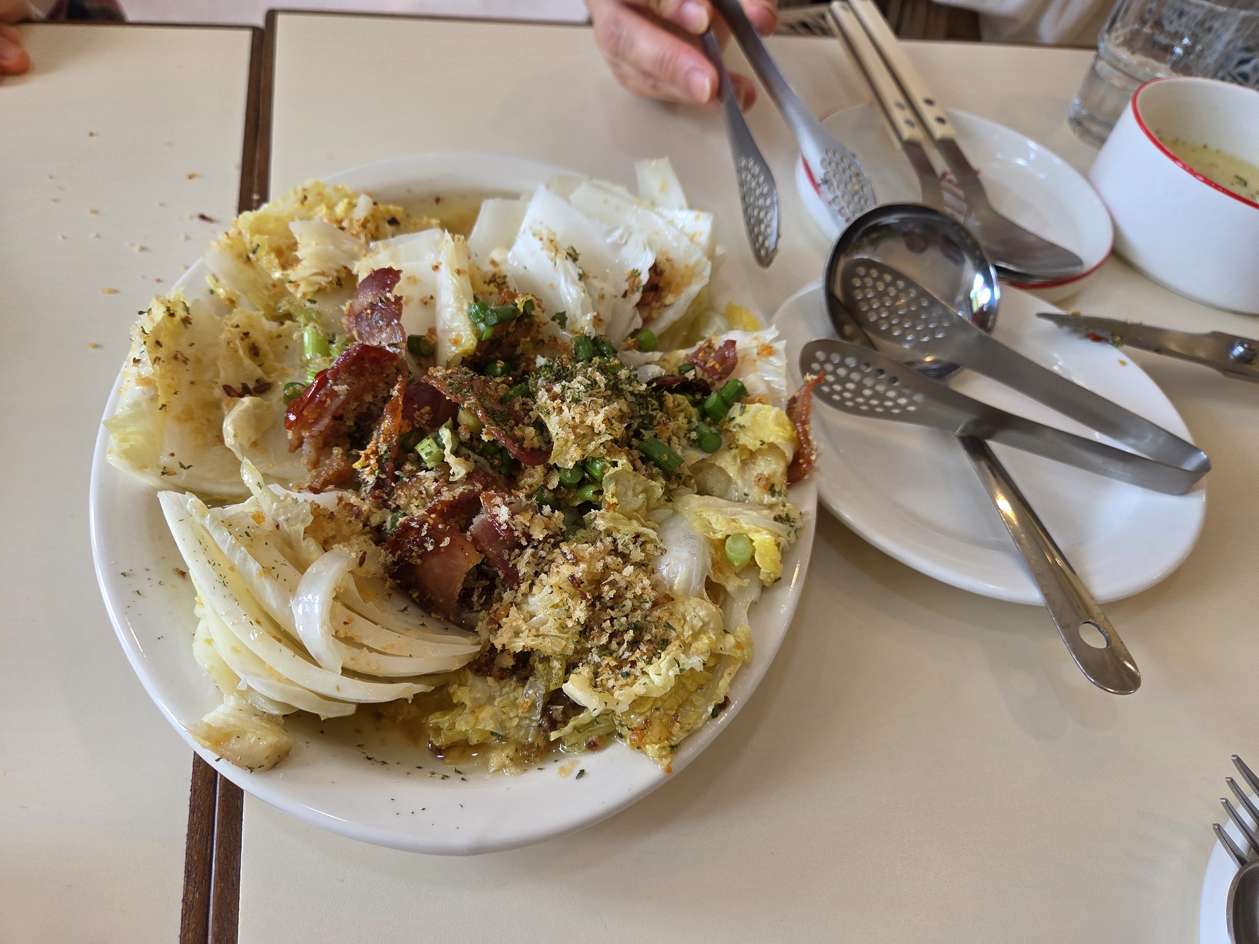 살짝 그릴에 구워 고소한 향이 배어든 알배추 위에 상큼한 드레싱이 곁들여져 있었습니다. 채소 본연의 단맛이 잘 살아있어서 첫 입부터 만족스러웠어요.