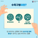 수족구 병이 예년보다 빨리 찾아왔다 지난 4월 20일 질병관리본부에 따르면 수족구병 표본 감식 결과, 전체 외래환자 1000명 당 의사 환자 수가 올해 7주 차(2월 11~17일) 0.2명에서 16주 차(4월 15~21일) 0.7명으로 증가세를 보인다.앞으로 지속적인 기온 상승과 외부 활동이 늘면서 본격적인 유행 시기에 돌입할 것으로 전망된다고 한다. 수족구병은 주로 한여름인 7~8월에 집중적으로 발생하는데, 최근 지구온난화로 더위가 일찍 시작하면서 유행 시기도 예년보다 한 달가량 빠른 현상을 보인다. 수족구병은 주로 콕사키 바이러스 A16 또는 엔테로 바이러스 71에 의해 발병하는 질환으로, 여름과 가을철에 흔히 발생하며 입 안의 물집과 궤양, 손과 발의 수포성 발진을 특징으로 하는 질환이다. 주로 면..