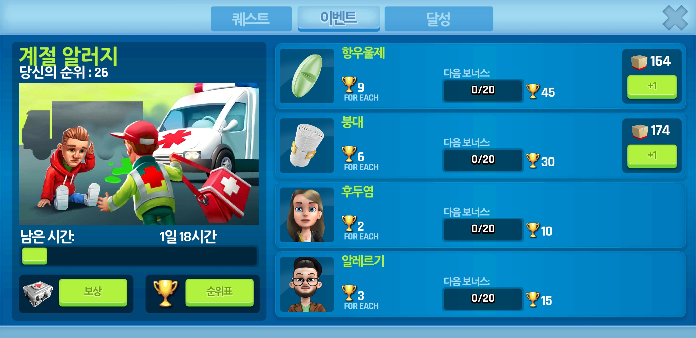 게임 Dream Hospital - "계절 알러지'' 이벤트
