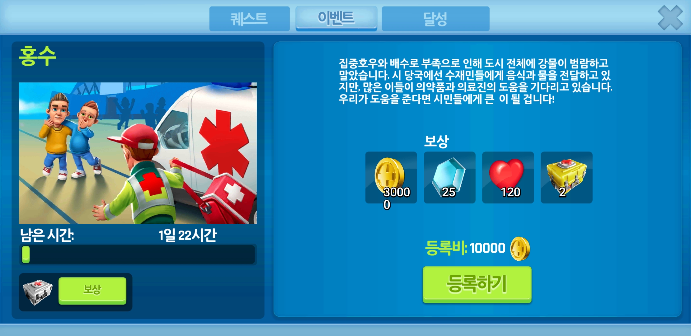 이번 Dream Hospital 이벤트는 ''홍수''입니다.