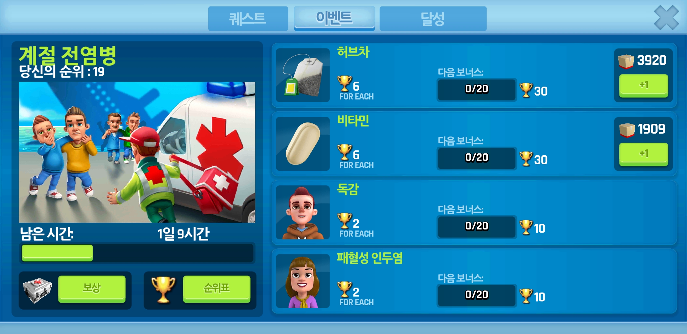 Dream Hospital 이번 이벤트는 ''계절전염병 ''입니다.