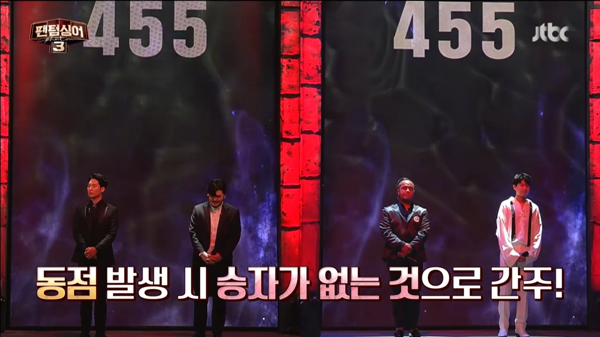 '바바로티'와 '작은 코가 맵규'와의 대결에서 두 팀 모두 455점을 받았고 팬텀싱어 룰에 따라 동점인 상황에서 우승자가 나타나지 않았다.