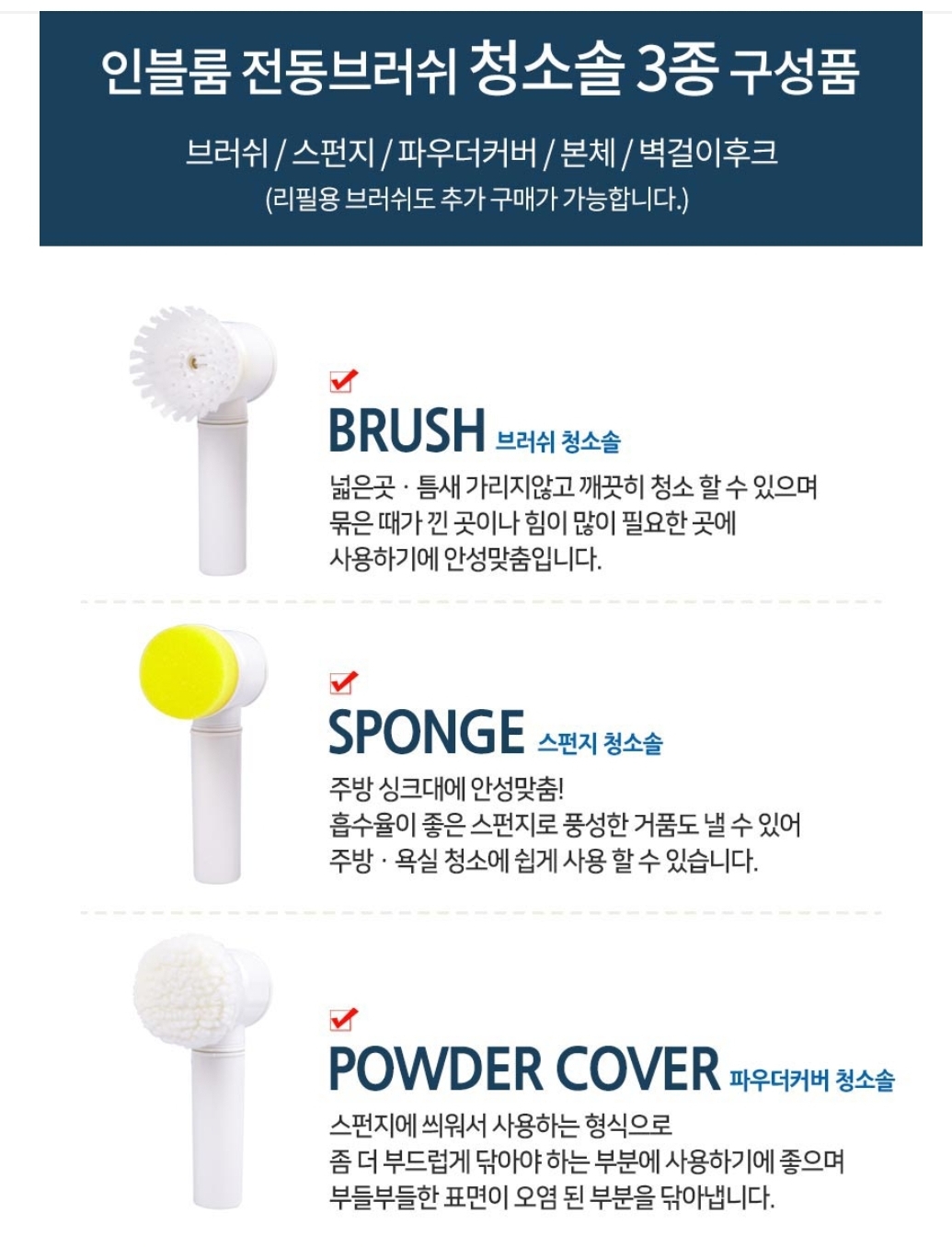 인블룸 다용도 욕실 매직전동 브러쉬 청소솔은