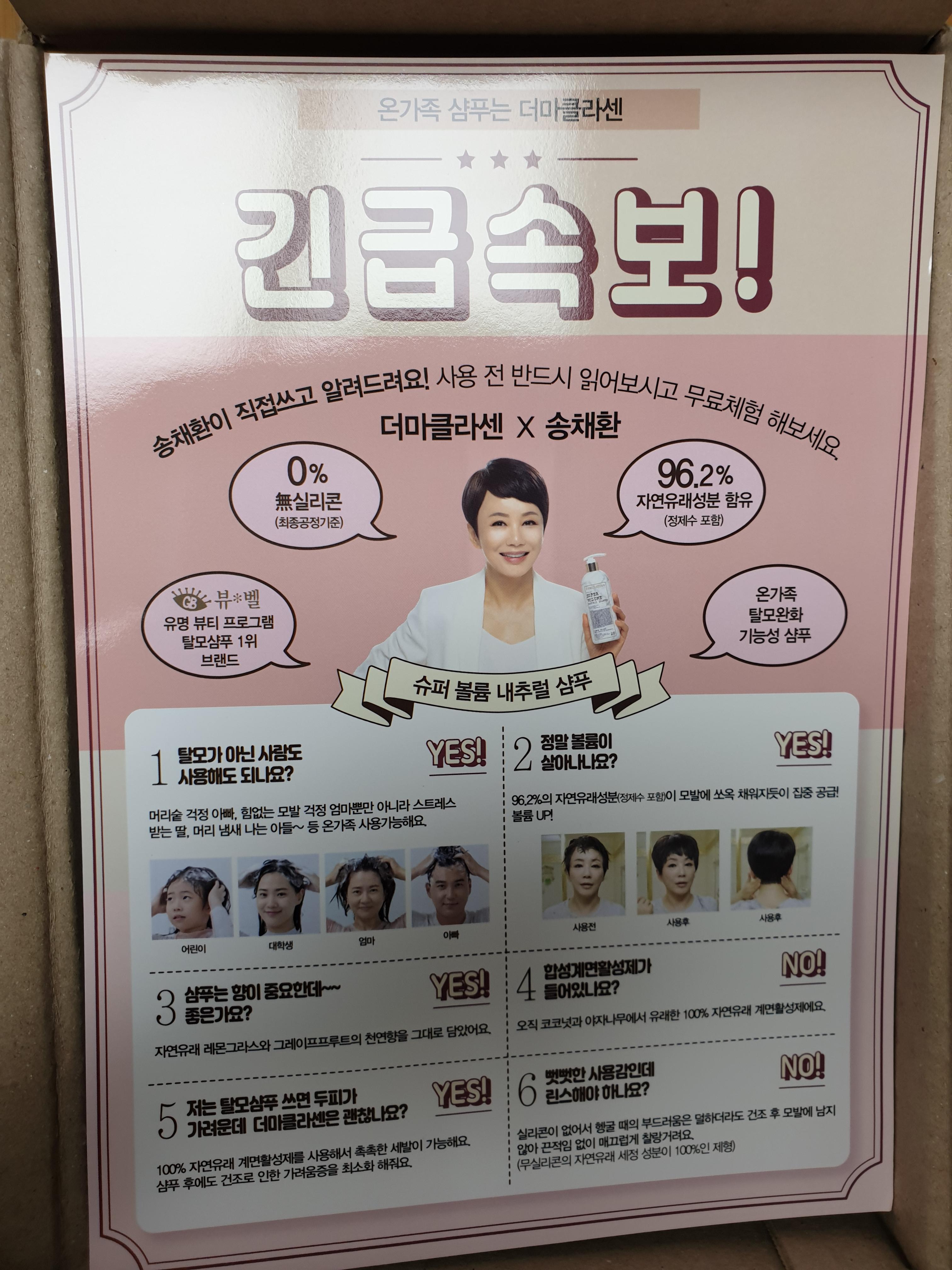 그때 송채환씨가 홈쇼핑에서 머리도 딱 감아주면서 광고를 하길래 또 혹해서 구매를 해봤어요.