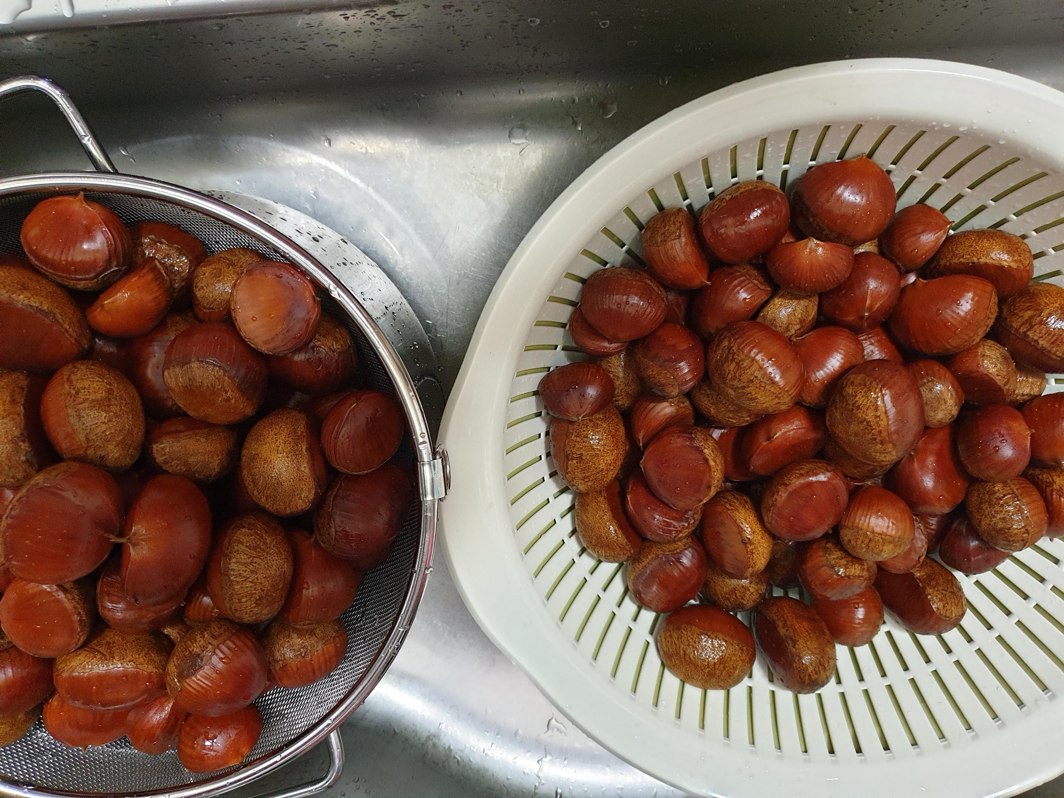 지난주말에 시골에 밤 따러갔던 이웃이 밤을 많이 나눠줬어요.