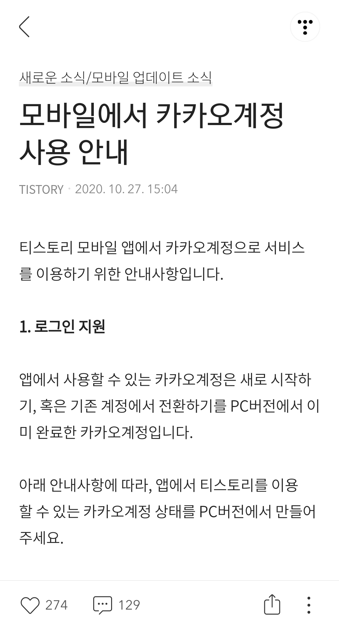 드디어 "모바일에서 카카오계정 사용 신청"을 했다.