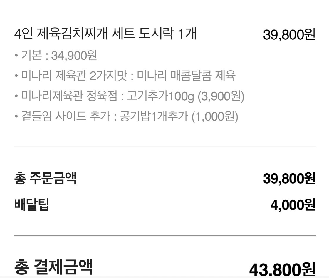 여기에서 식구가 4명 인지라 "제육김치찌개 세트 도시락"4인세트를 주문해 보았습니다.