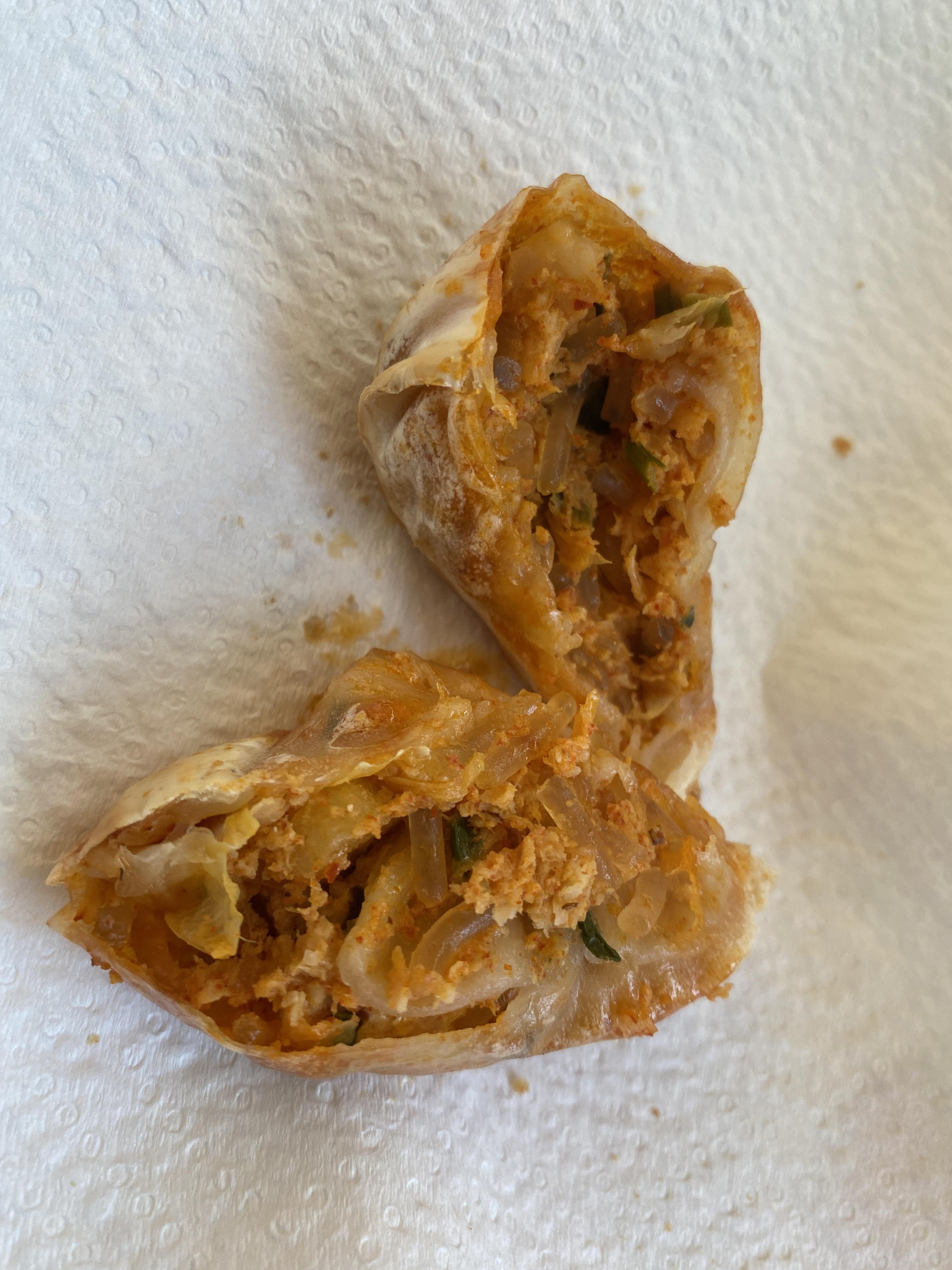 풀무원 얇은피 꽉찬 만두(김치맛)을 에어프라이어에서 꺼내면 약간 매콤한 냄새가 납니다. 꽤 매울 것 같은 느낌을 주지만... 한 입 베어물어보면 안맵습니다. 그냥 기분 좋은 김치맛입니다. 풀무원 얇은피 꽉찬 만두가 좋은 것이... 돼지고기, 김치와 함께 깍두기의 조화가 기가막힙니다.