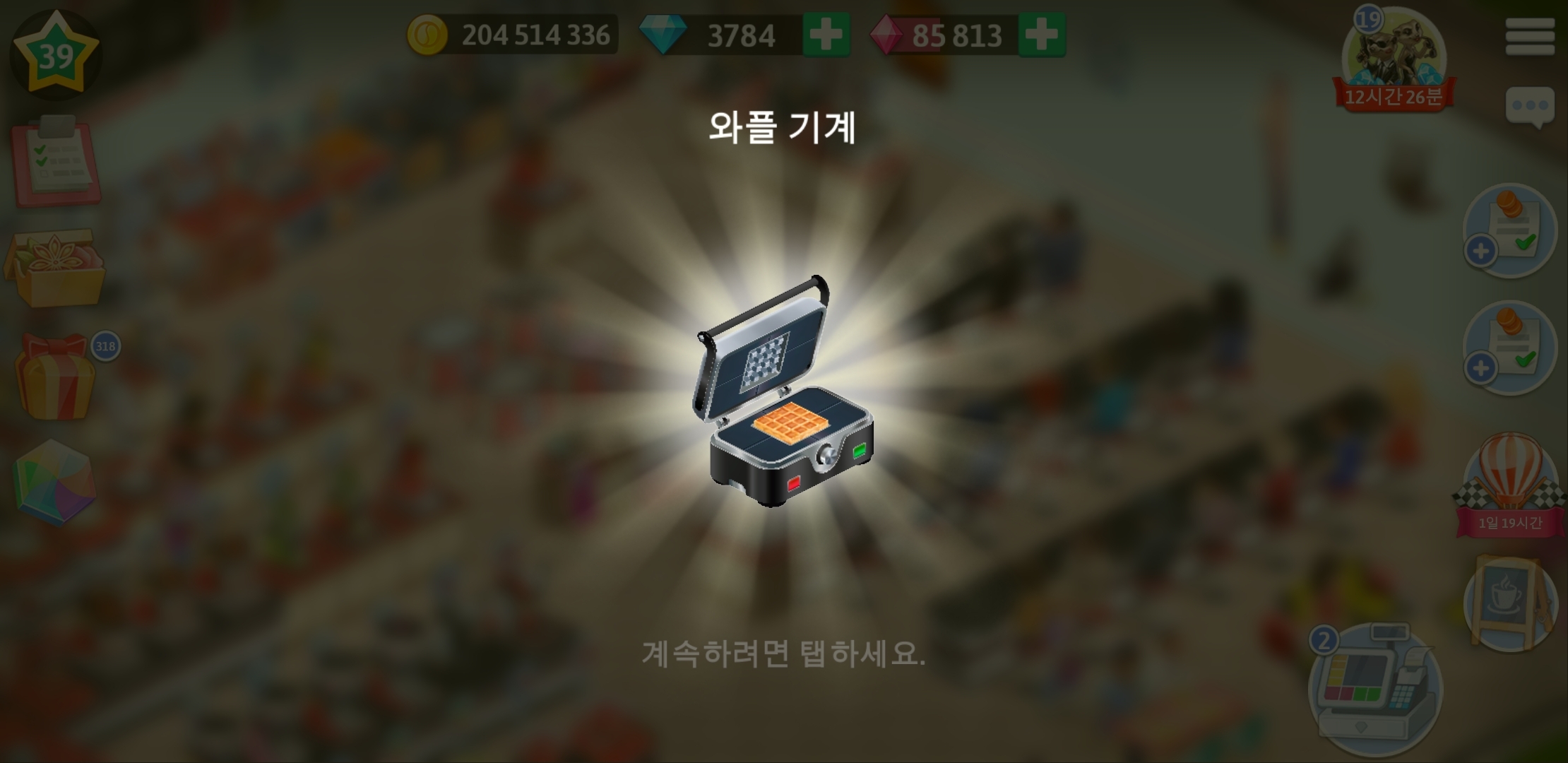 39레벨이 되니 와플 기계가 나왔다.