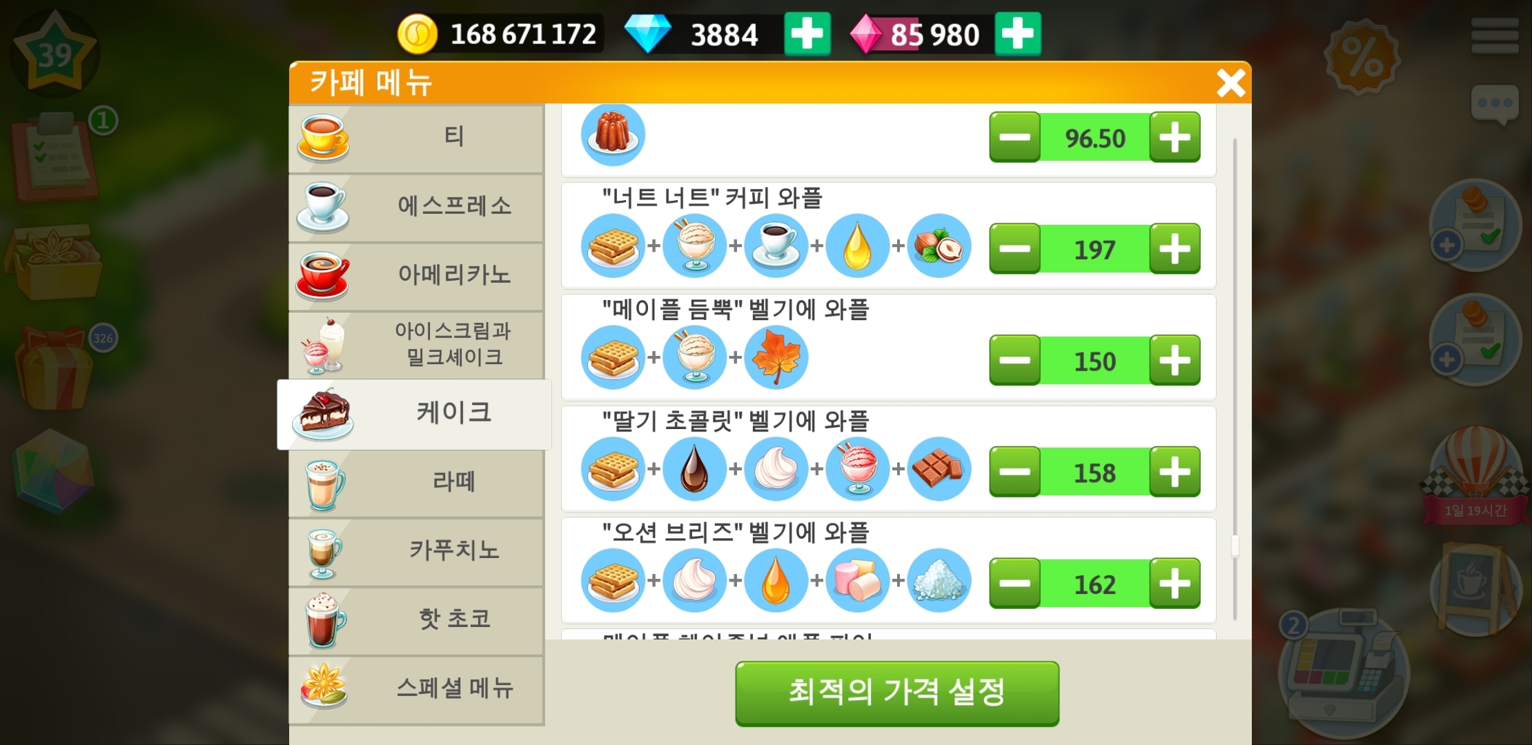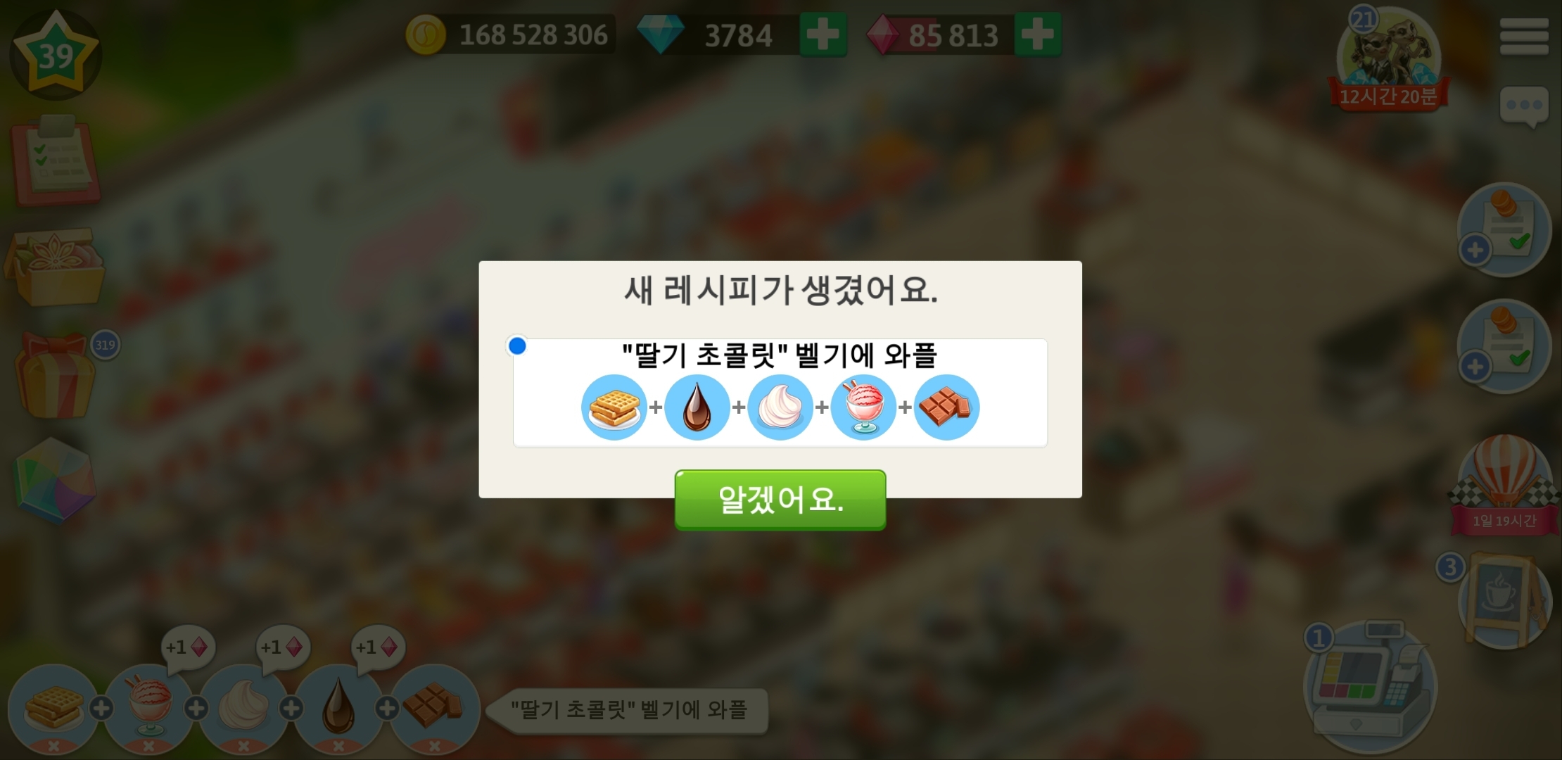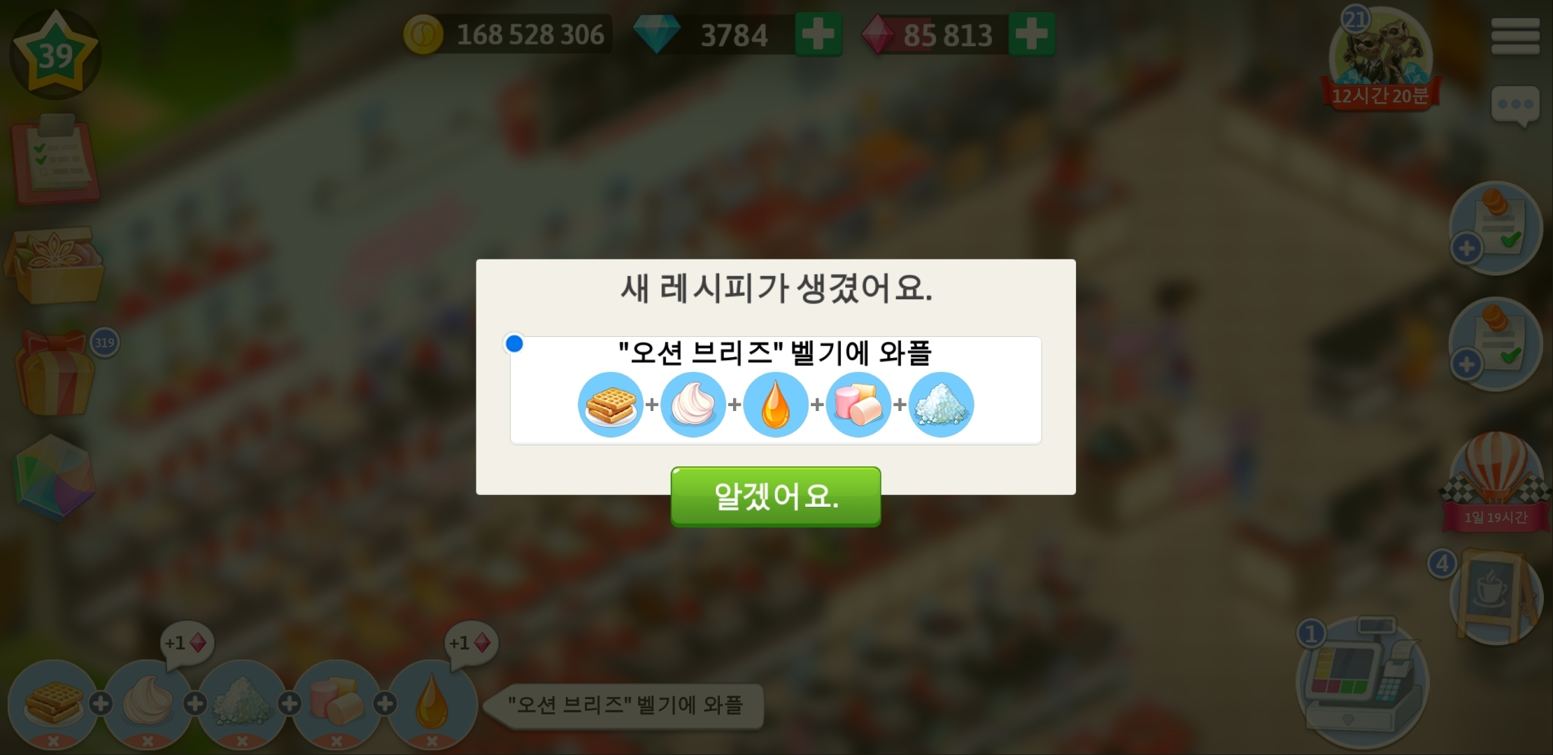 마이카페 39레벨 와플레시피