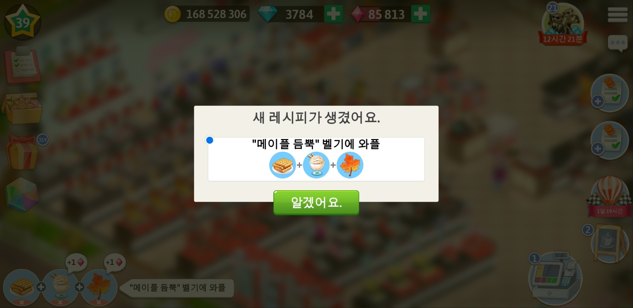 마이카페 39 레벨 와플 레시피