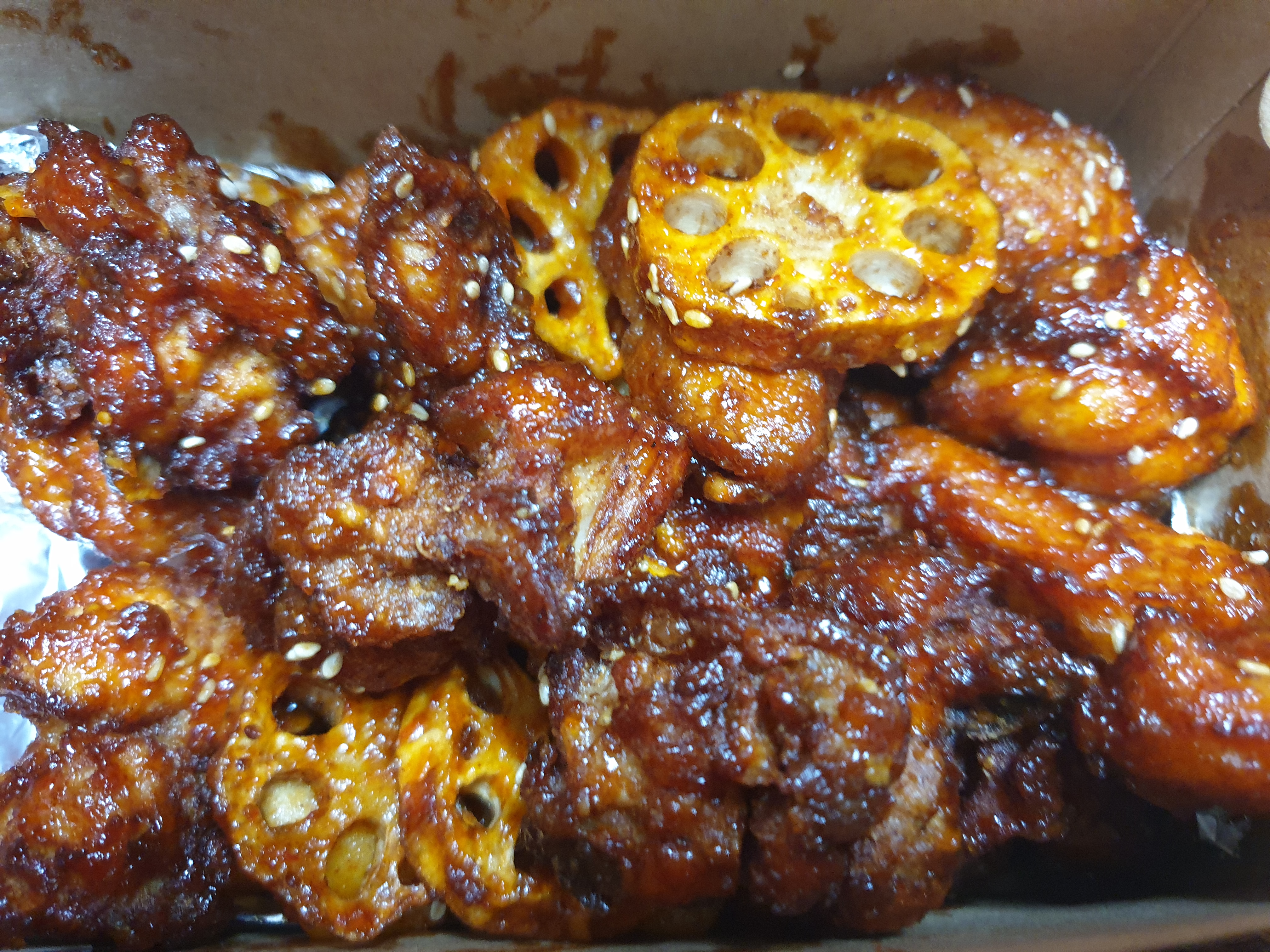 양념 치킨 종류들은 요렇게 두군대 담아주는 것도 마음에 듭니다.