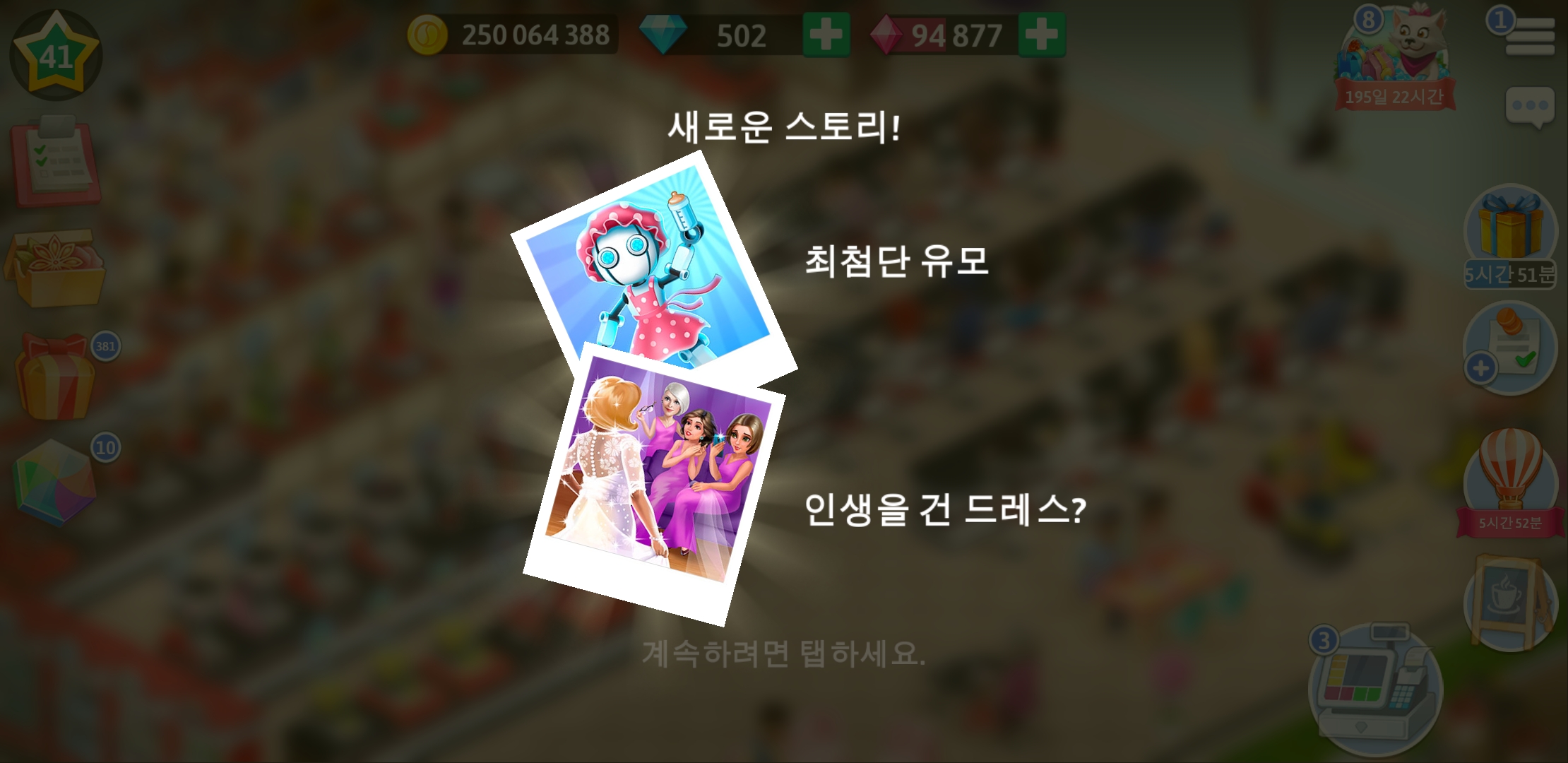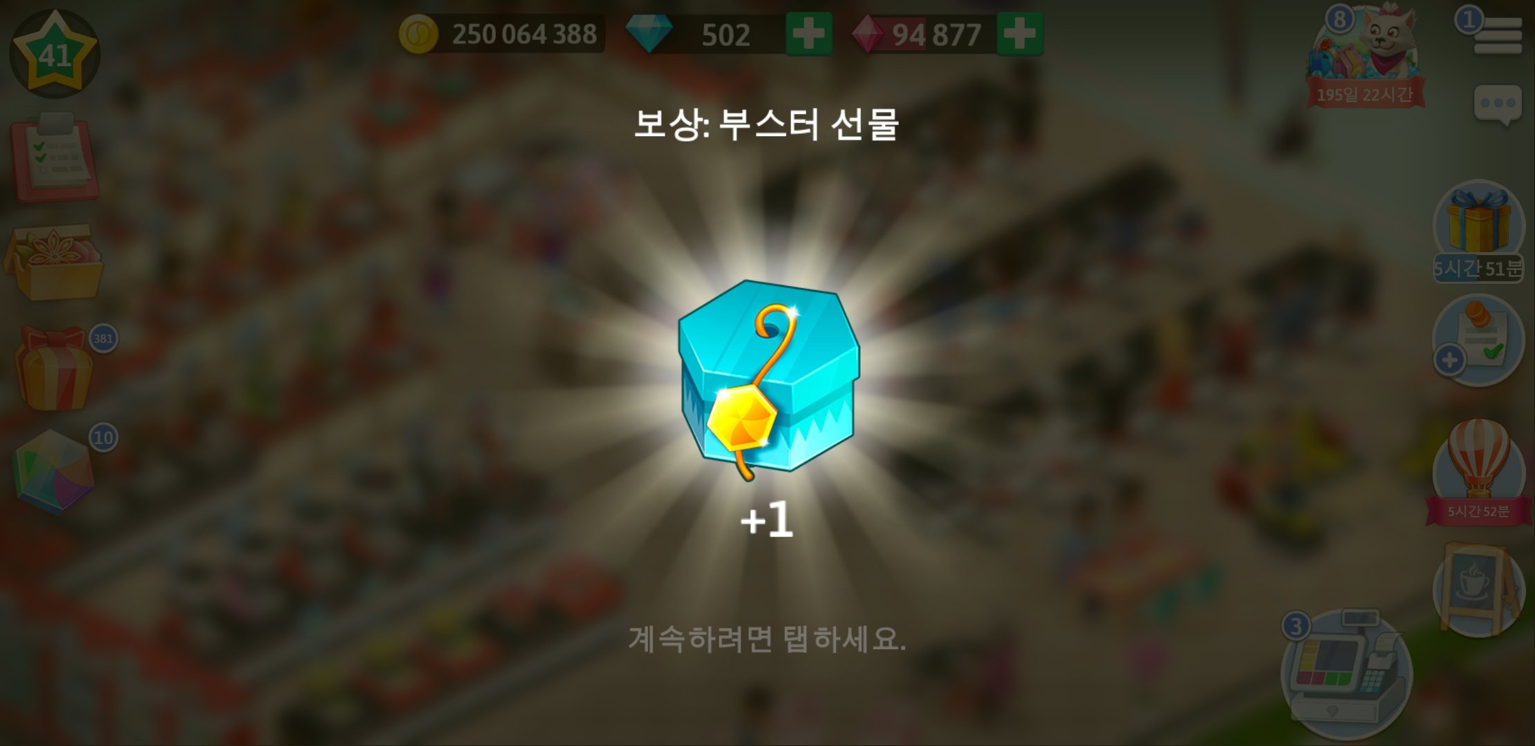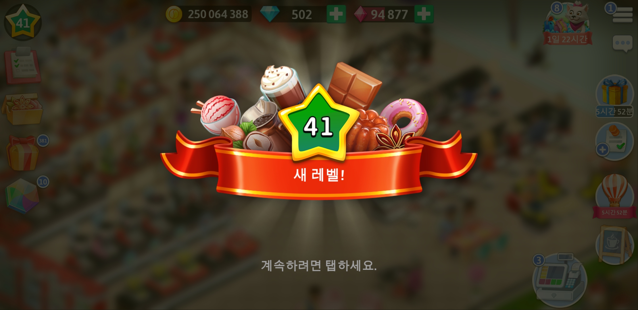 새 등장인물 도미니카의 갱단 소탕을 끝으로 왓슨이 골드선물을 주면서 마이카페 40레벨이 마무리 됩니다.