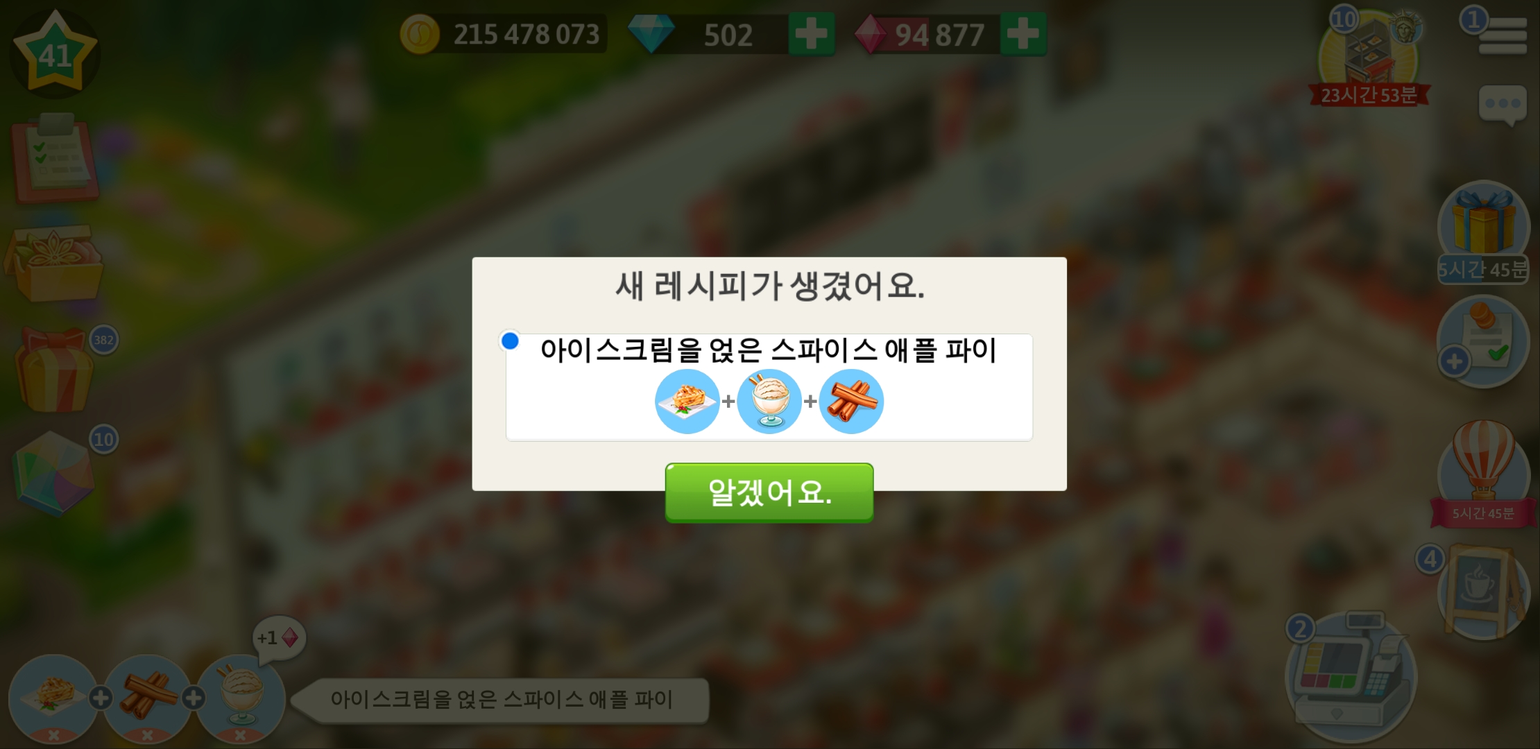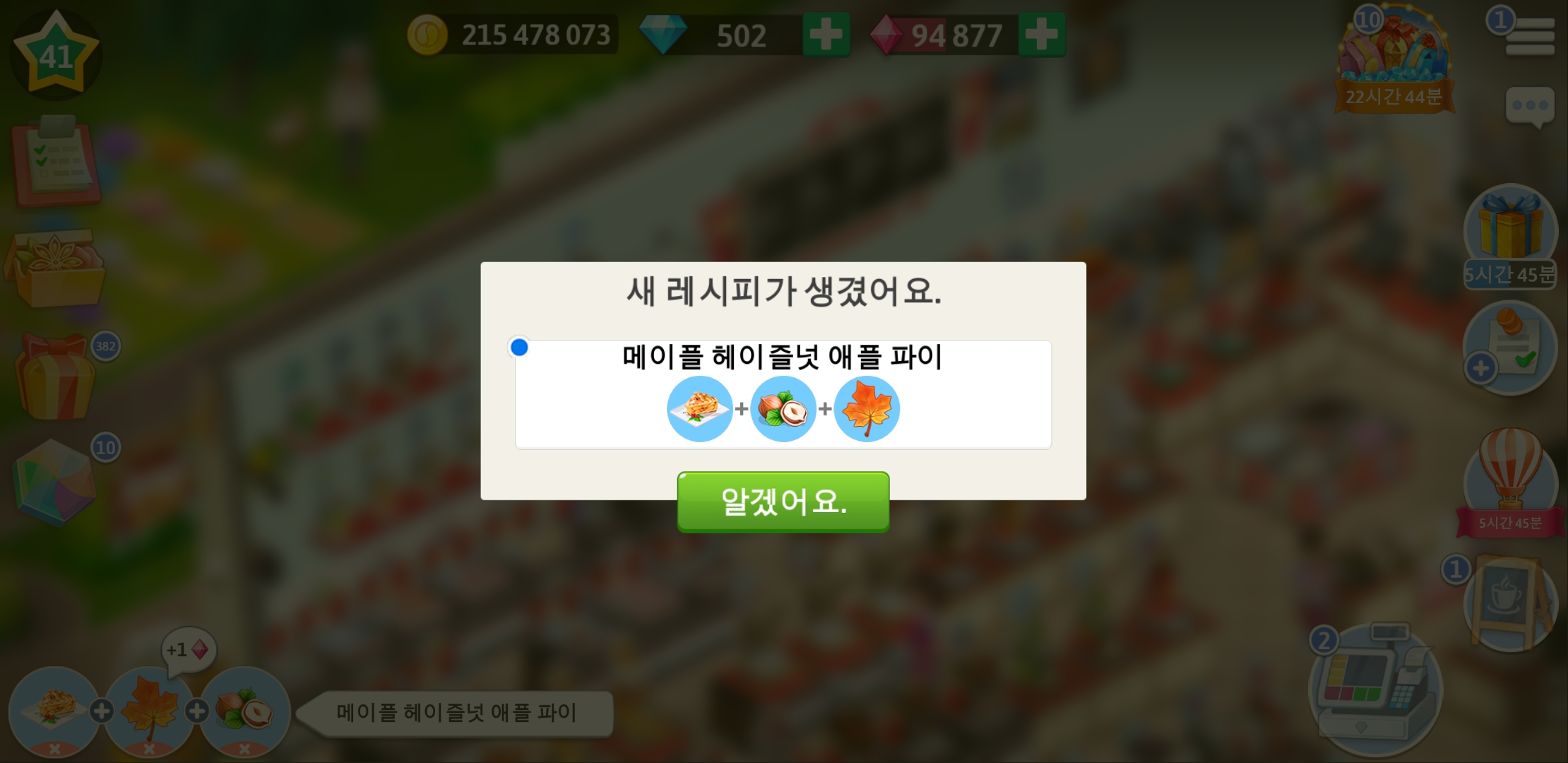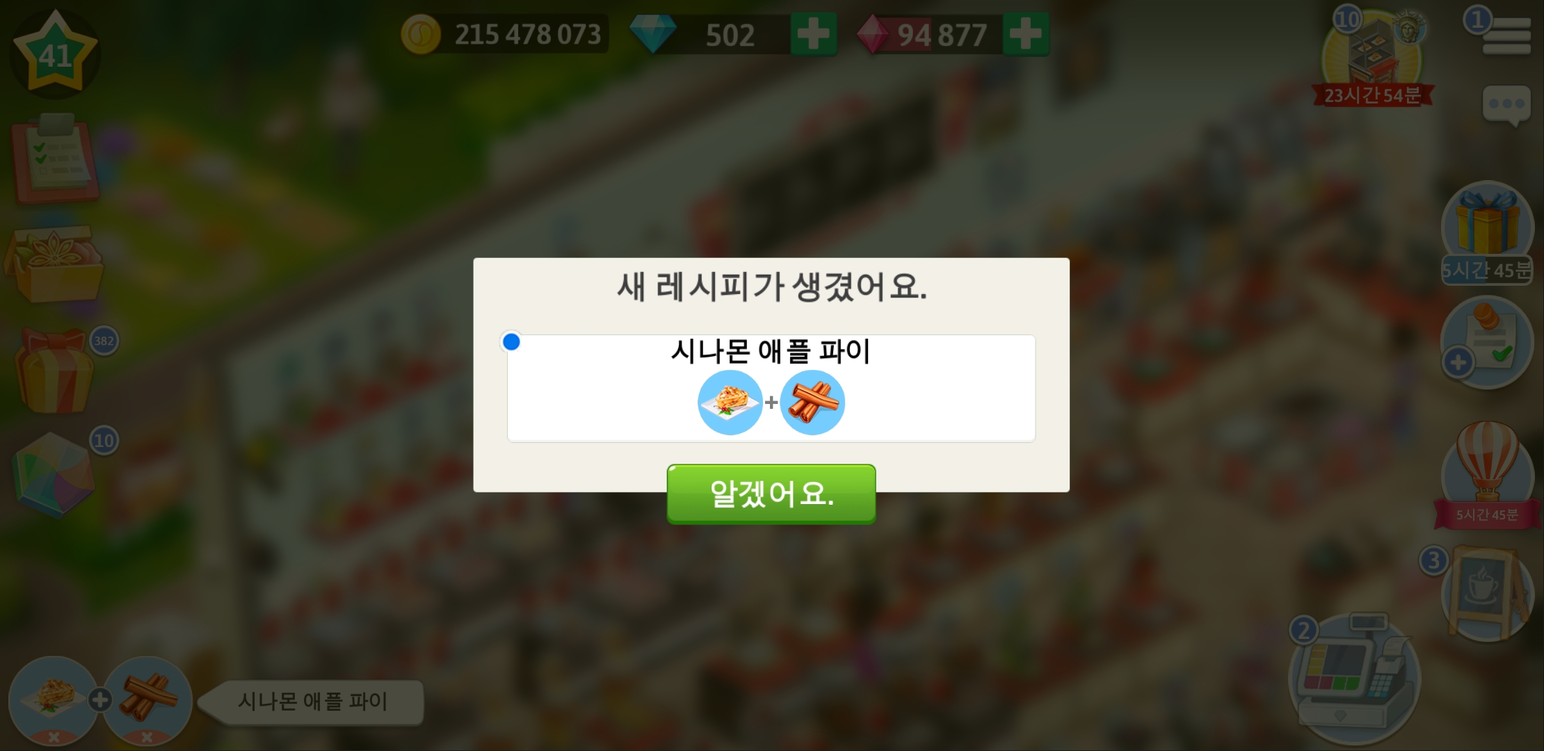 새 등장인물 도미니카의 갱단 소탕을 끝으로 왓슨이 골드선물을 주면서 마이카페 40레벨이 마무리 됩니다.